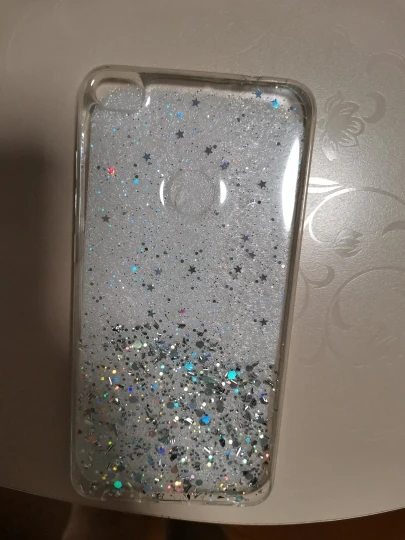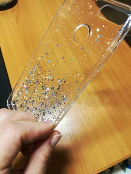 Чехол понравился, крепкий, очень красиво смотрится на золотом телефоне, но блесток оказалось гораздо меньше, чем на фотке. плюс как писали выше - царапается довольно быстро и легко. но сидит крепко, кнопки закрывает. Из минусов - одна звездочка торчит, прям ощутимо объемная. И из отверстий на динамике одно закрыто чехлом, а остальные 6 открыты. Но чехол красивущий и удобный все равно (последняя фотка продавца - для сравнения)