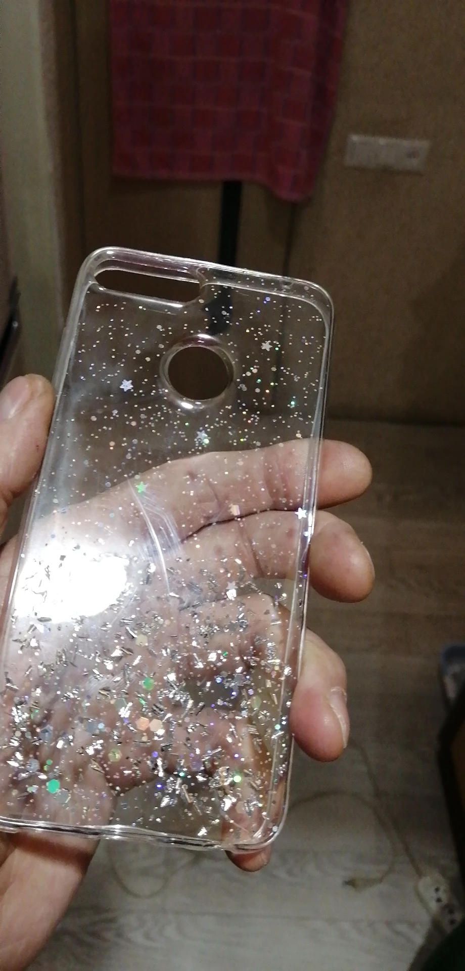 Чехол отличный, прозрачный с серебренными блёстками. Размер подошёл)