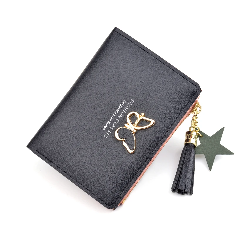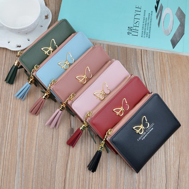 Новинка 2020, металлический женский кошелек с украшением в виде бабочки, милый кошелек, модные короткие кожаные женские кошельки с кисточками, кошелек на молнии, кошелек, клатч
