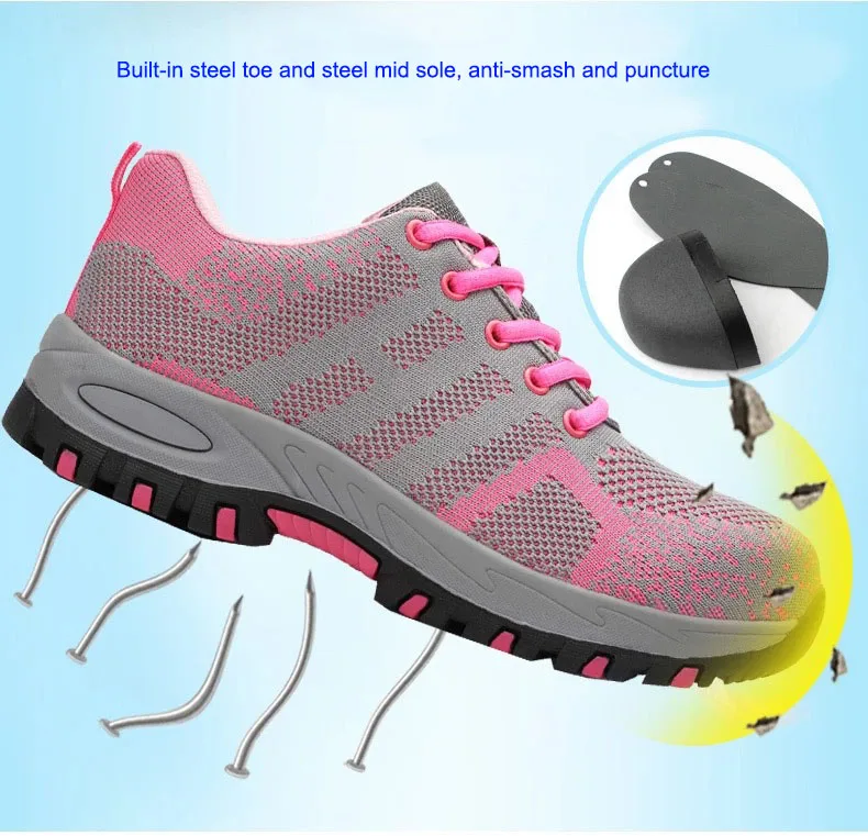 Рабочая защитная обувь со стальным носком, женские защитные ботинки, стальная защитная обувь со средней подошвой, непробиваемая защитная обувь