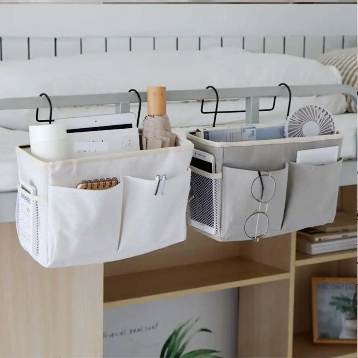 Железные подвесные сумки для хранения, прикроватный органайзер для хранения книг, телефонов в комнате, с крючком, карманы для кровати