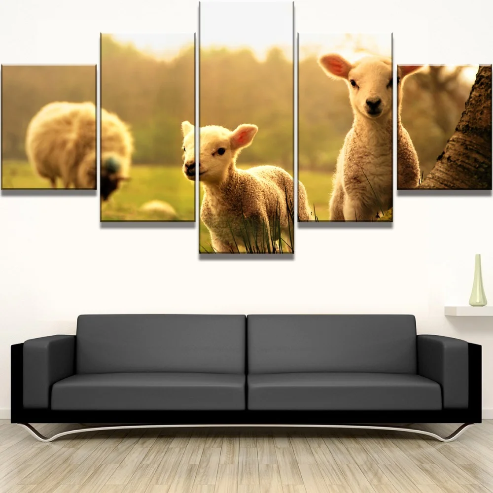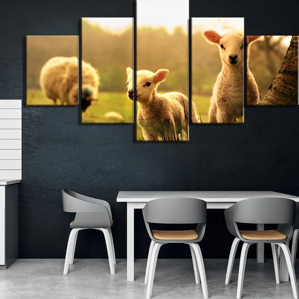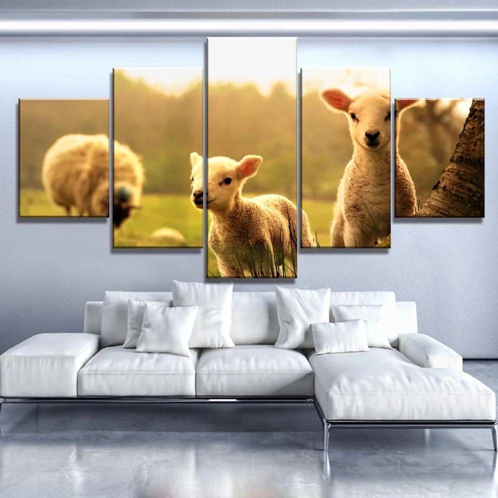 Картины на холсте, 5 шт., HD печать, большой закат, флок, овечка, животные, украшение на стену, украшение для дома, Настенный декор