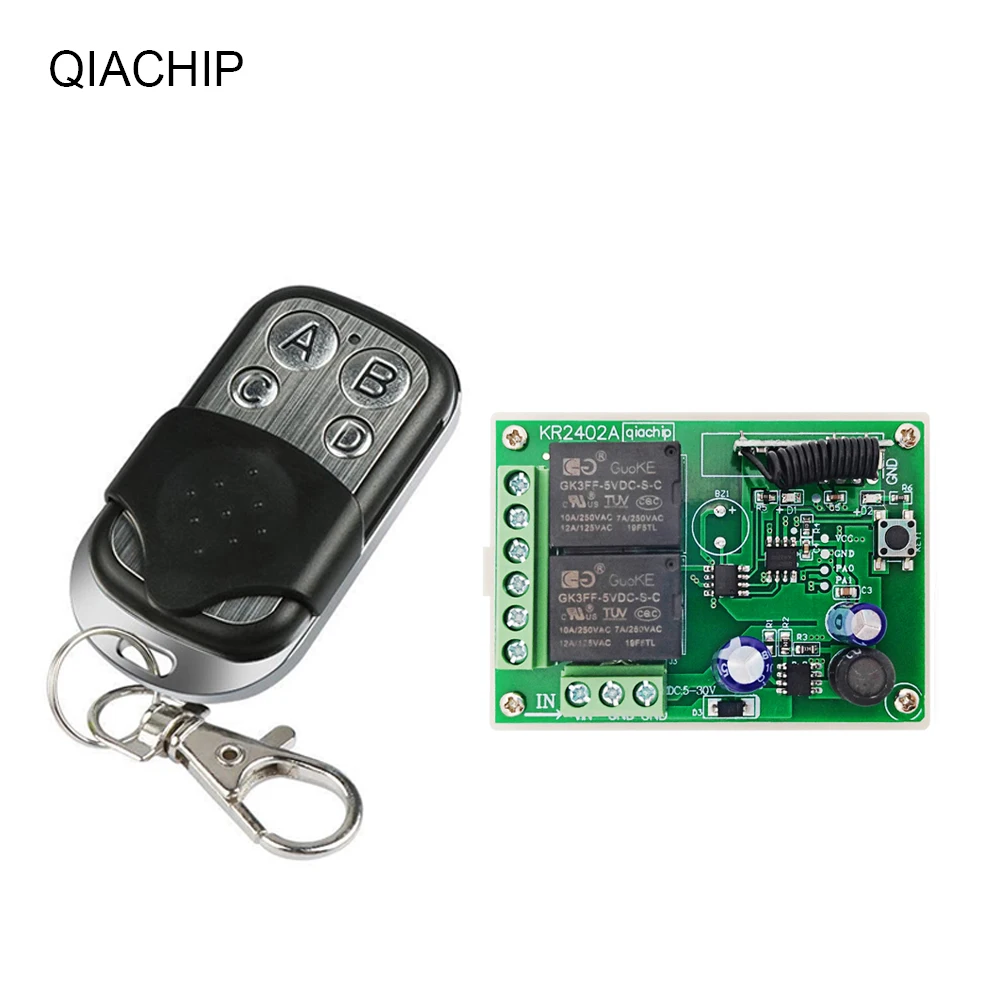 Радиорелейный модуль QIACHIP, универсальный беспроводной пульт дистанционного управления для открывания Гаражных дверей, 433 МГц, 2 канала, 6 в, 12 В, 24 В постоянного тока