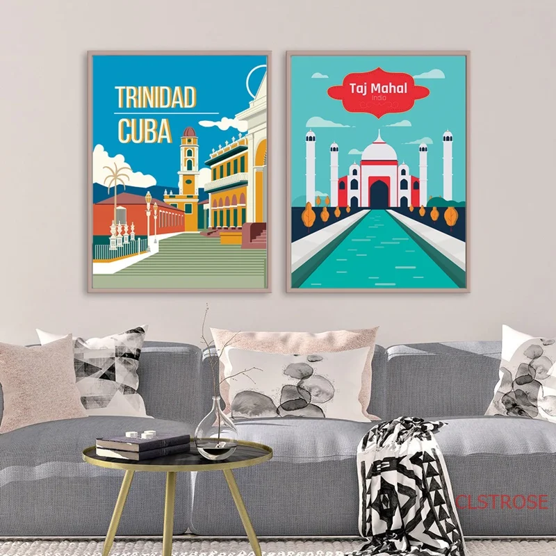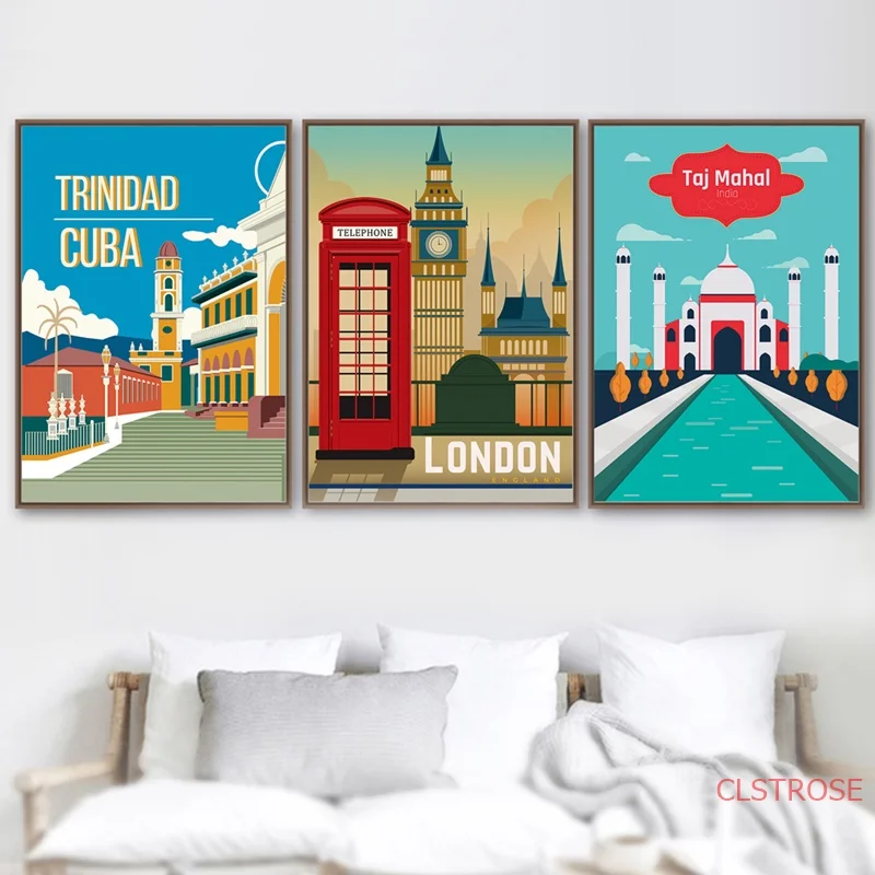 Настенная картина в стиле ретро, Лондонский город, тадж-махал, Картина на холсте, скандинавские постеры и принты, настенные картины для гостиной, домашний декор
