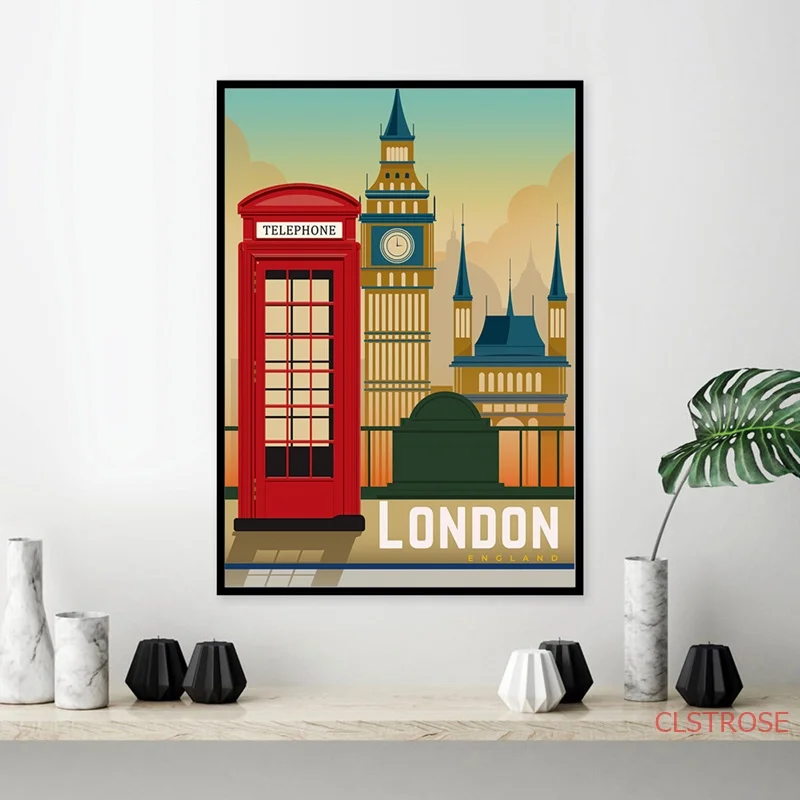 Мультфильм Римский Нью-Йорк Лондонский город пейзаж холст картина Северный дом декорат...