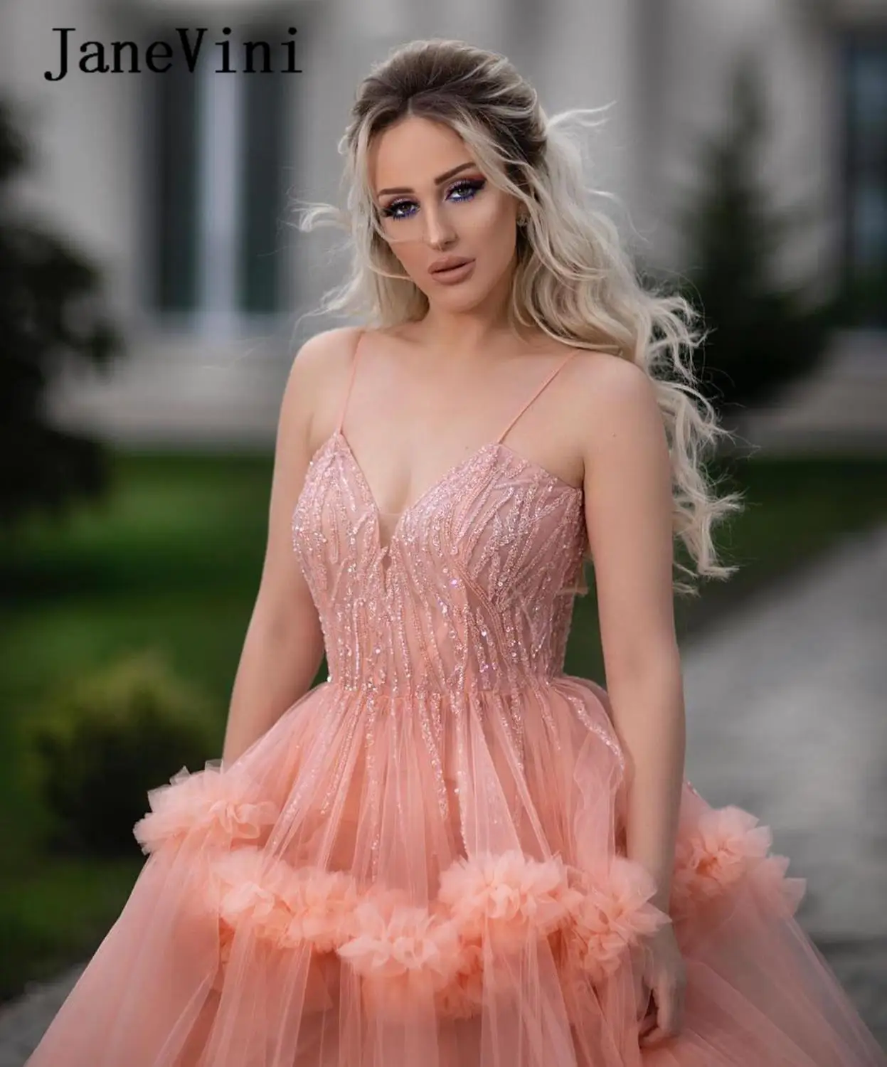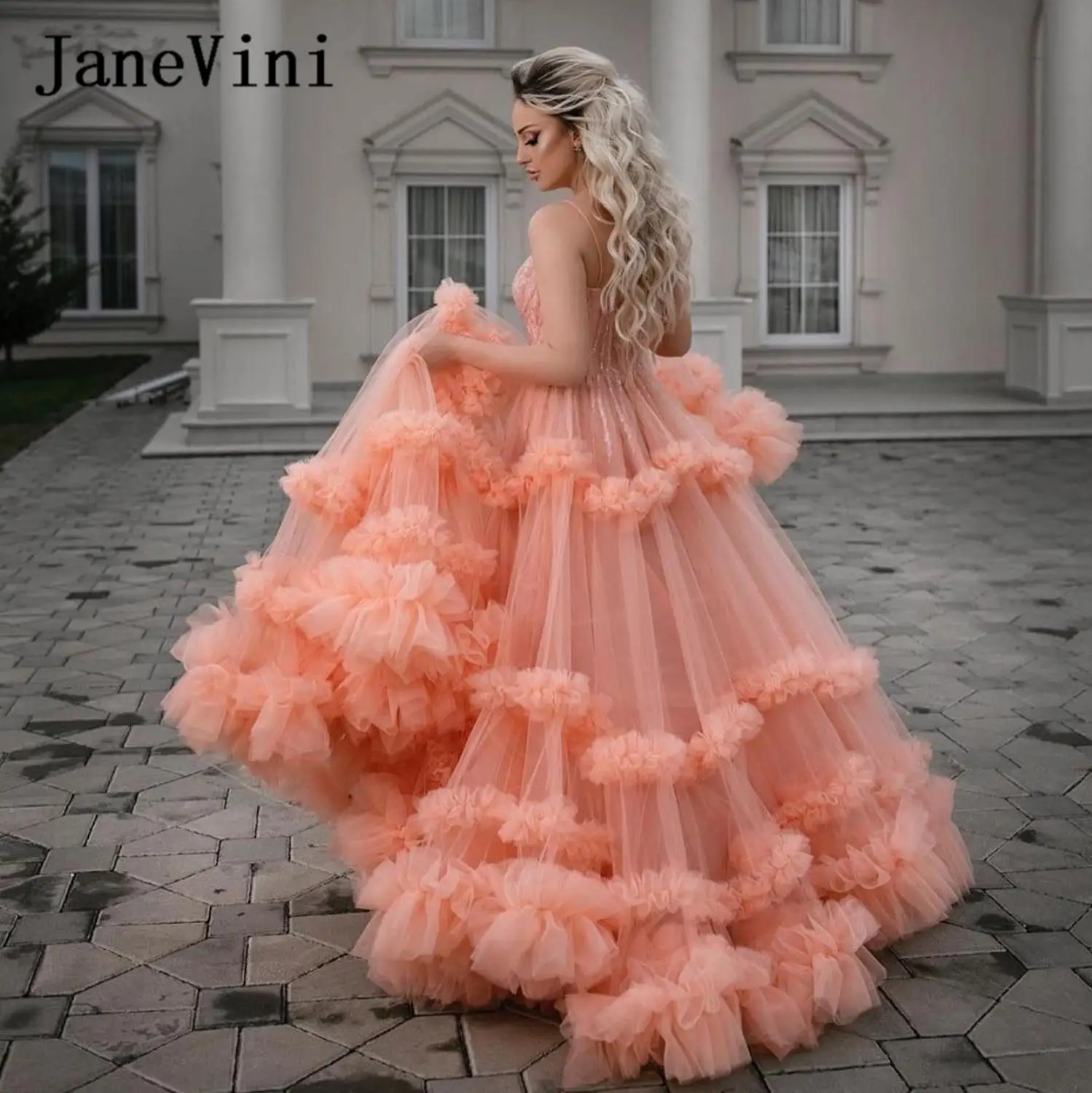 JaneVini великолепные Дубайский арабский ТРАПЕЦИЕВИДНОЕ платье для выпускного вечера с длинным 2020 пикантная обувь на тонких бретелях с сверкающими бисерный Тюль Вечерние платья размера плюс