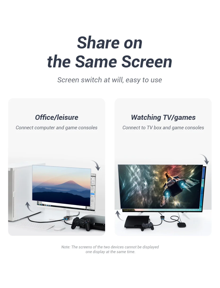Двойной переключатель Vention HDMI, двунаправленный сплиттер HDMI 2.0 1x22x1, адаптер 2 входа-1 выход, конвертер для PS4 Pro43, ТВ-приставки, переключатель HDMI 4K