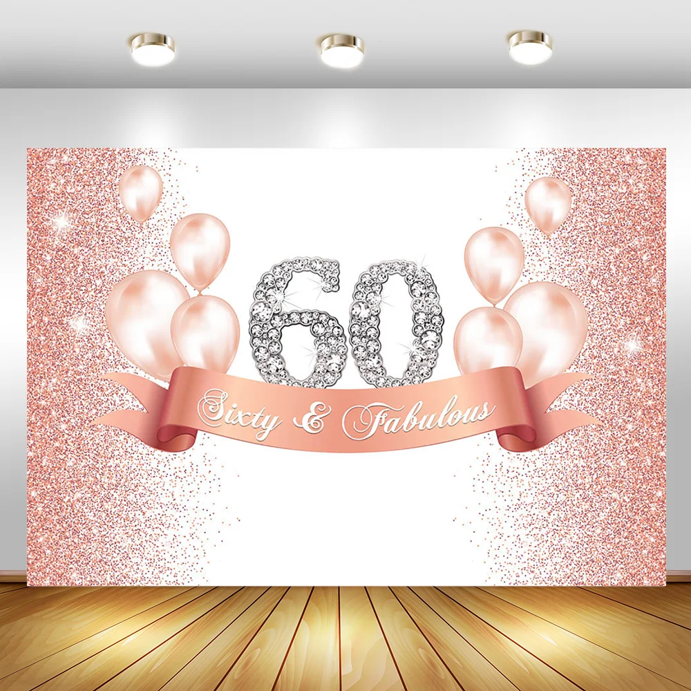 Фон для фотосъемки с изображением розового золота в горошек с надписью Happy 30th 40th 50th 60th Birthday