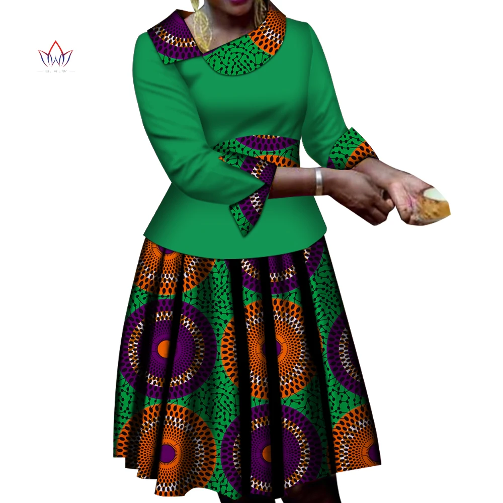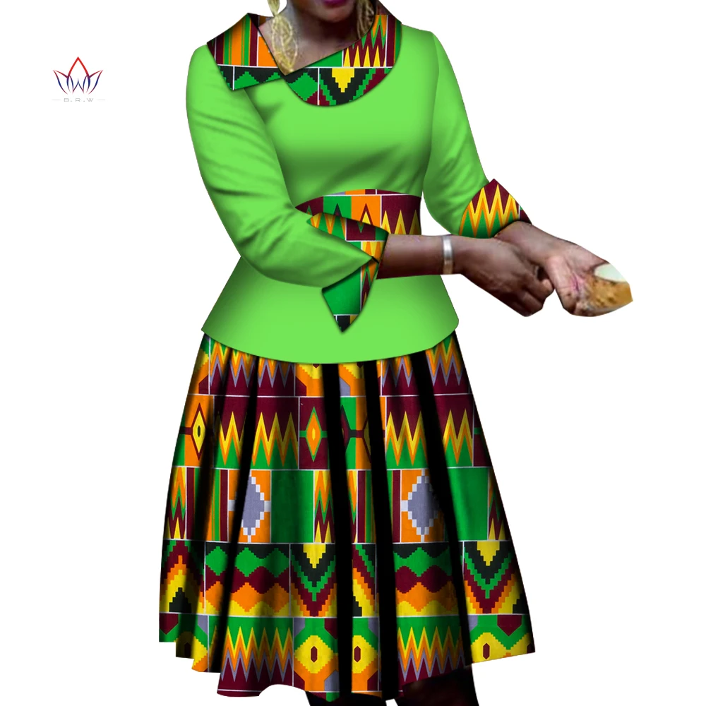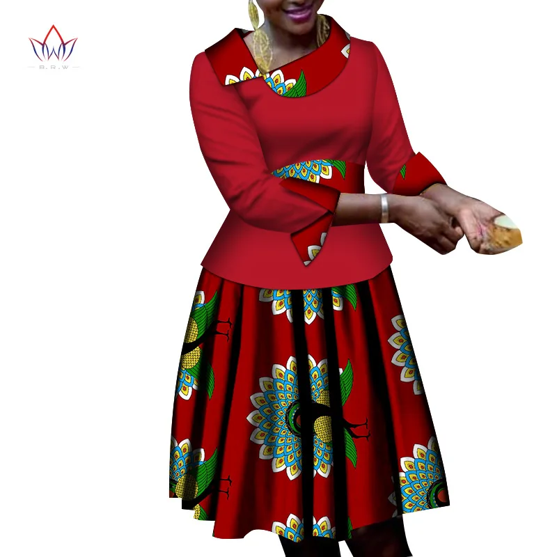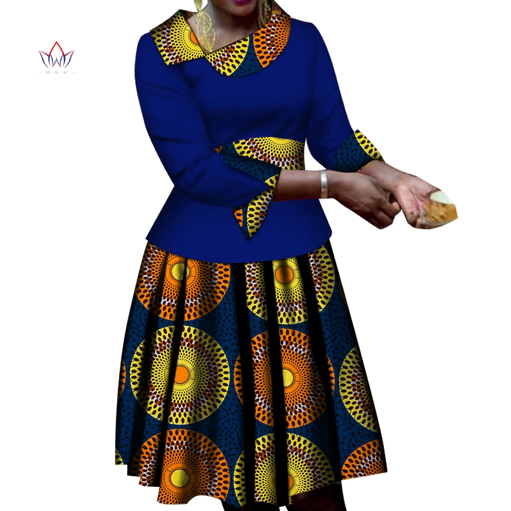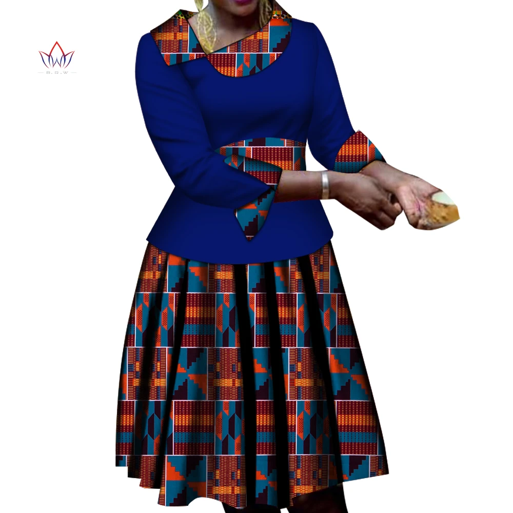 Комплект женский из топа и юбки, с принтом и длинным рукавом, WY6530
