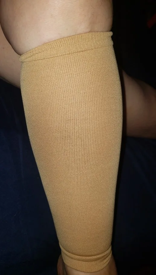 Отлично качество чулка. Доставка тоже порадовала всего 2,5 недели до Ленинградской области. Получила в почтамте в пятёрочки. Мне конечно чулок короткий,вы на фото сами видите)так как икра объемная но, мне и так нравиться. Эффект компрессии очень даже нормально. Советую к покупке.