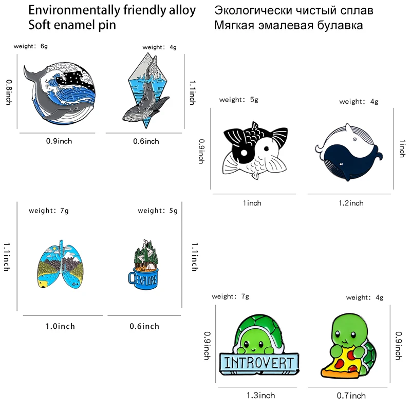 2 шт.компл., эмалированные булавки в виде пчелы, броши в виде рыбы Инь-Янь, броши в виде ежика, Кита, динозавра, значок на лацкан, милые животные, ювелирные изделия, подарки