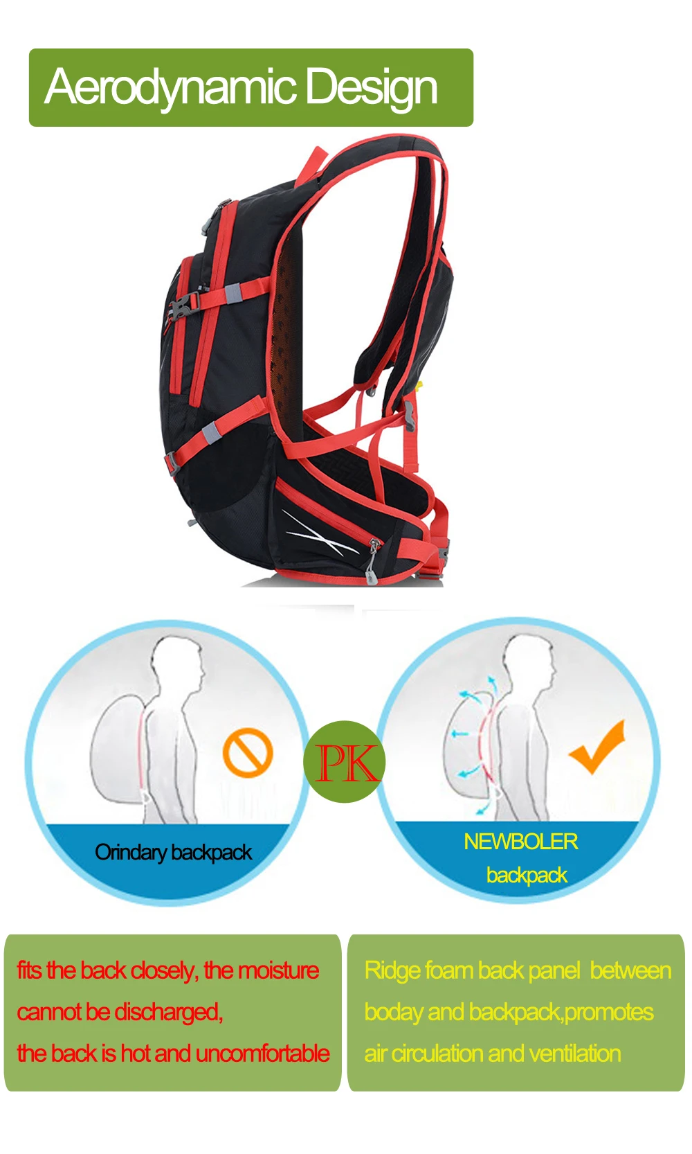 Рюкзак NEWBOLER Hydration изготовлен из высококачественной сетчатой нейлоновой ткани, прочный и легкий. Эргономичный дизайн с мягкой спинкой обеспечивает превосходный опыт, комфорт и воздухопроницаемость.