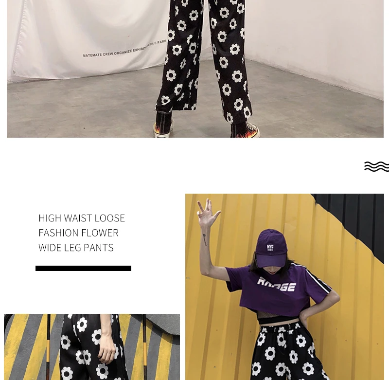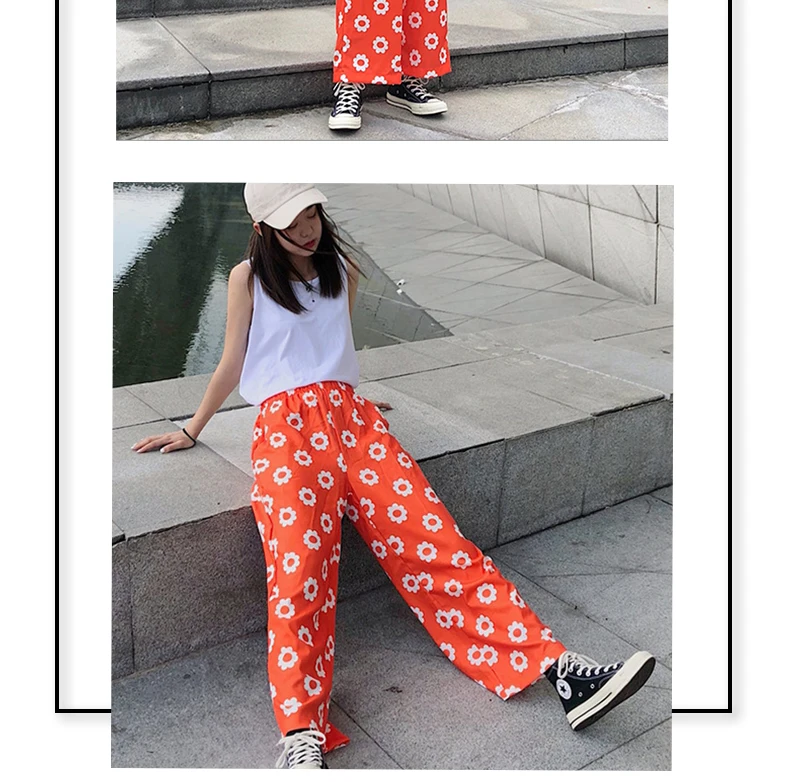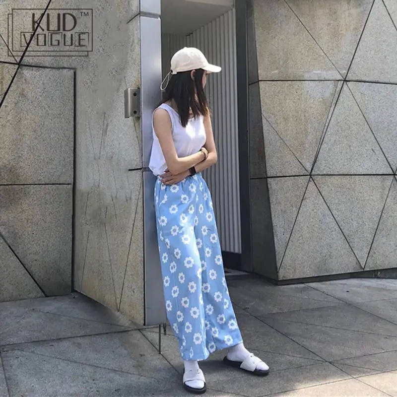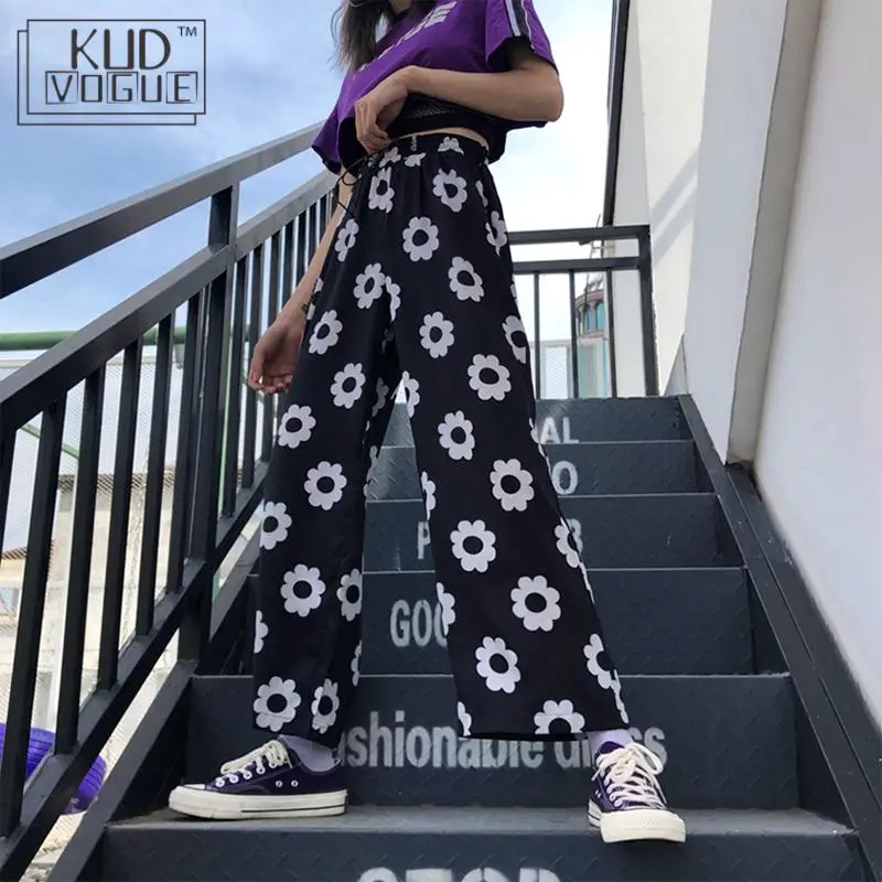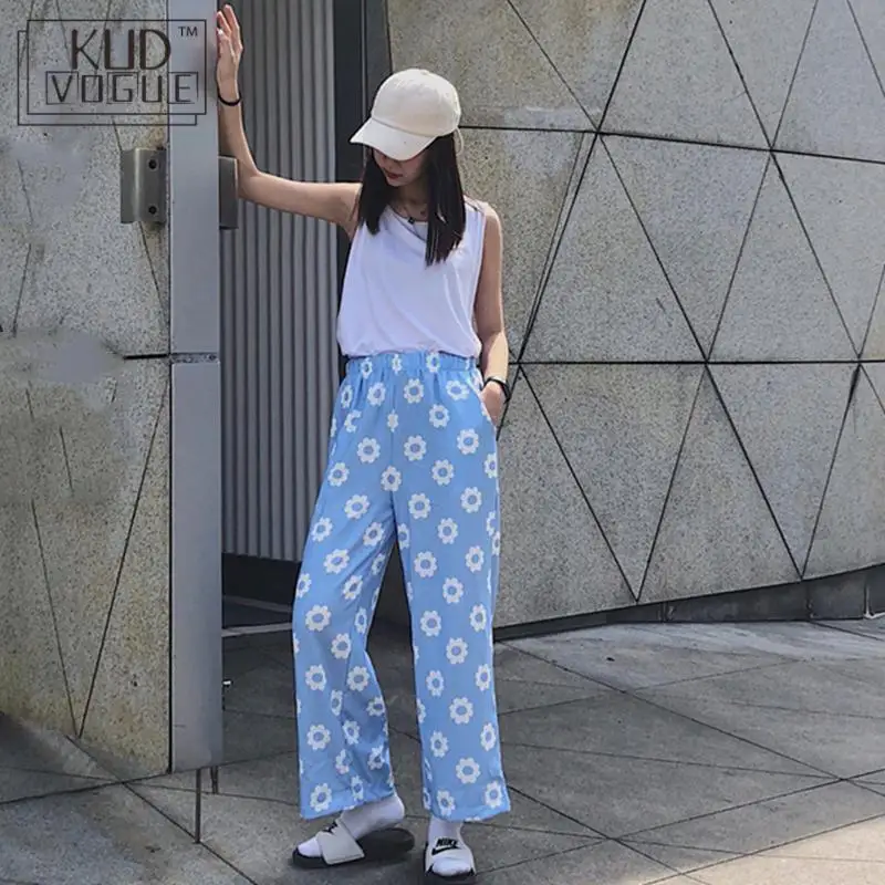 широкие штаны штаны женские Высокая талия Свободные брюки хиппи уличная ромашка цветочные широкие ноги модные брюки Boho струнные летние корейские брюки Харадзюку