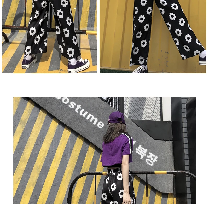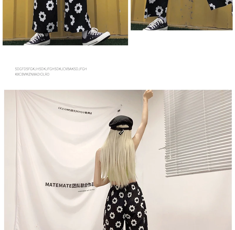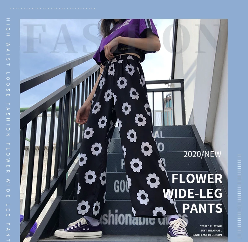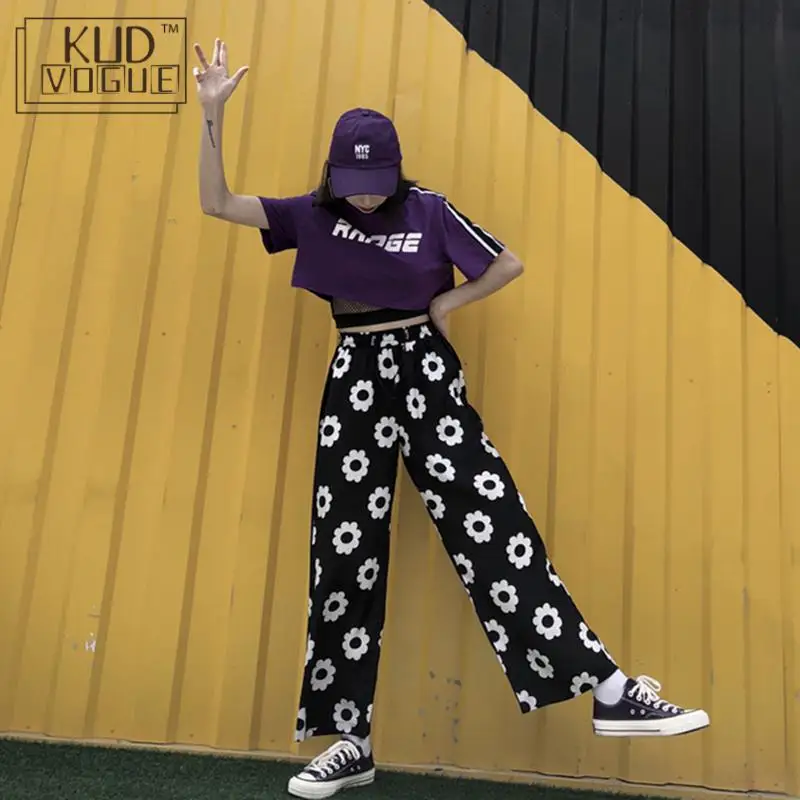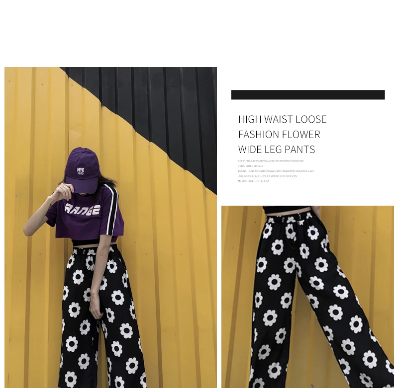 широкие штаны штаны женские Высокая талия Свободные брюки хиппи уличная ромашка цветочные широкие ноги модные брюки Boho струнные летние корейские брюки Харадзюку