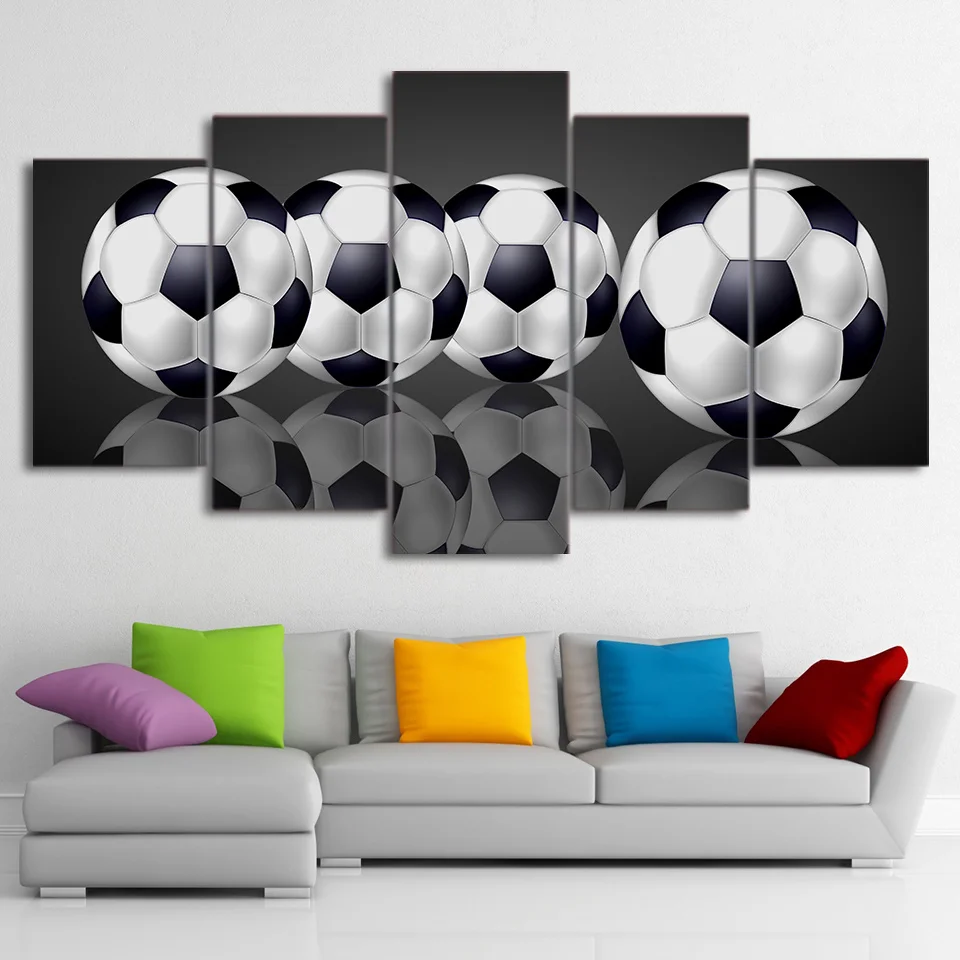 Настенный плакат, Современный домашний декор, гостиная, спальня, 5 шт., абстрактная футбольная Спортивная холщовая картина, модульные картины, рамка