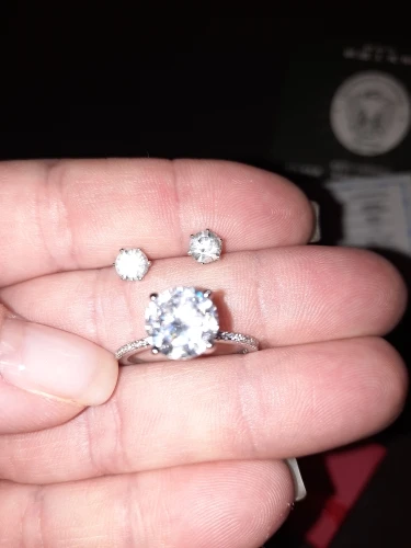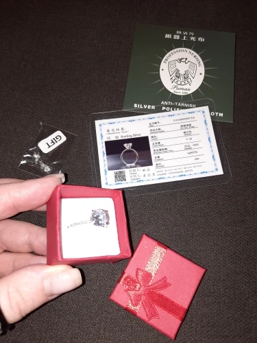 Красивое кольцо с сертификатом, полученное с сертификатом, а также тканью для очистки денег. Я очень доволен этим продавцом. Я очень рекомендую это. Как описано. The seller is Really kind. Я получил серьги