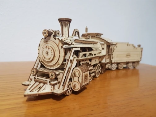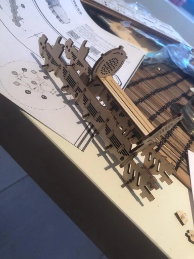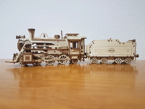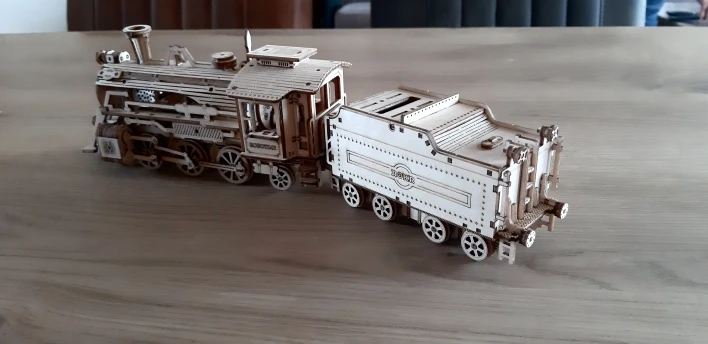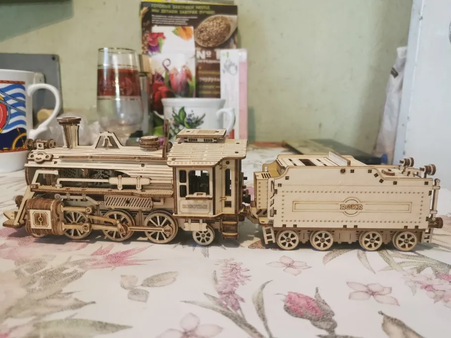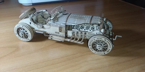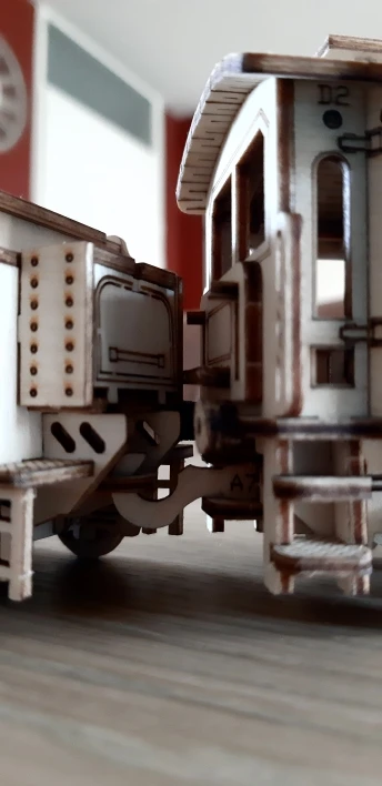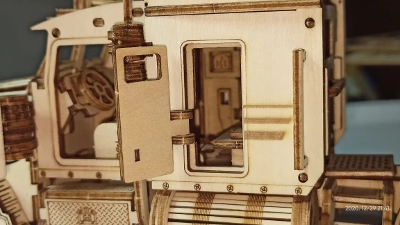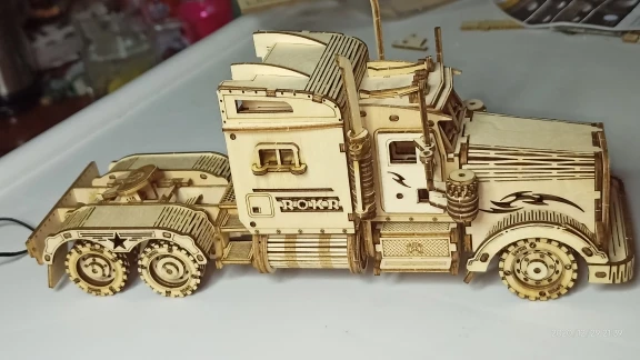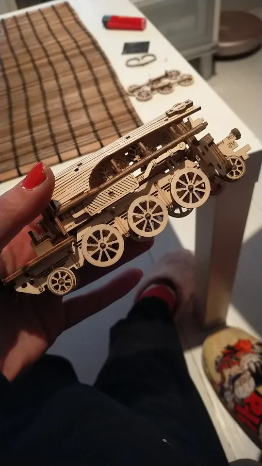 Ожидала лучшего. И так. Фанера хрупкая реально. У меня при входе в пазы складывалась гармошкой. Запах клея. Деталей 5 в хлам. Но там попытаюсь заделать. И народ.. Это при том что опыт сборки более 50 моделей и тд.. Главный вопрос: ездит или нет? Хм, смотрите колесо находится на статичной оси. И на кружке, так вот, если эту деталь по кругу обработать наждачкой и воском/парафином то будет крутится хорошо. 5/10 в общем. Удалось купить за 360 грн. Я бы сказала покупайте Ugears, кайфуйте от их качества и ловите экстаз от сборки. На фото еще не готова модель И НАРОД. Если я пишу что фанера писецки хрупкая, значит она реально писецки хрупкая.