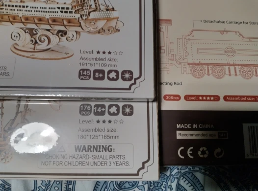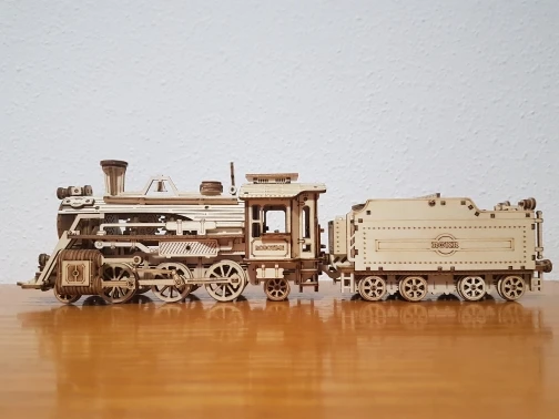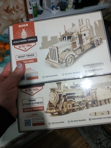 покупал для себя, давно хотел что-то подобное, взял два набора поезд и тягач, но разными доставками тягач из России, а поезд из Китая. из России доставка при помощи IML они же в свою очередь отправили почтой России. в общем из Москвы дошло за 10 дней с момента заказа, а фактическая доставка заняла ровно 7 дней! Качество меня поразило, листы фанеры идеально отшлифованы, в наборе было 5 листов с деталями толщиной 2мм, поэтому если давать детям собирать то лучше вместе со взрослыми, также порадовало количество запасных деталей также в комплекте была нождачная бумага и подробная инструкция фотрата А3 с подписями, а также QR кодами с ссылкой на видео инструкции сложных мест в сборке