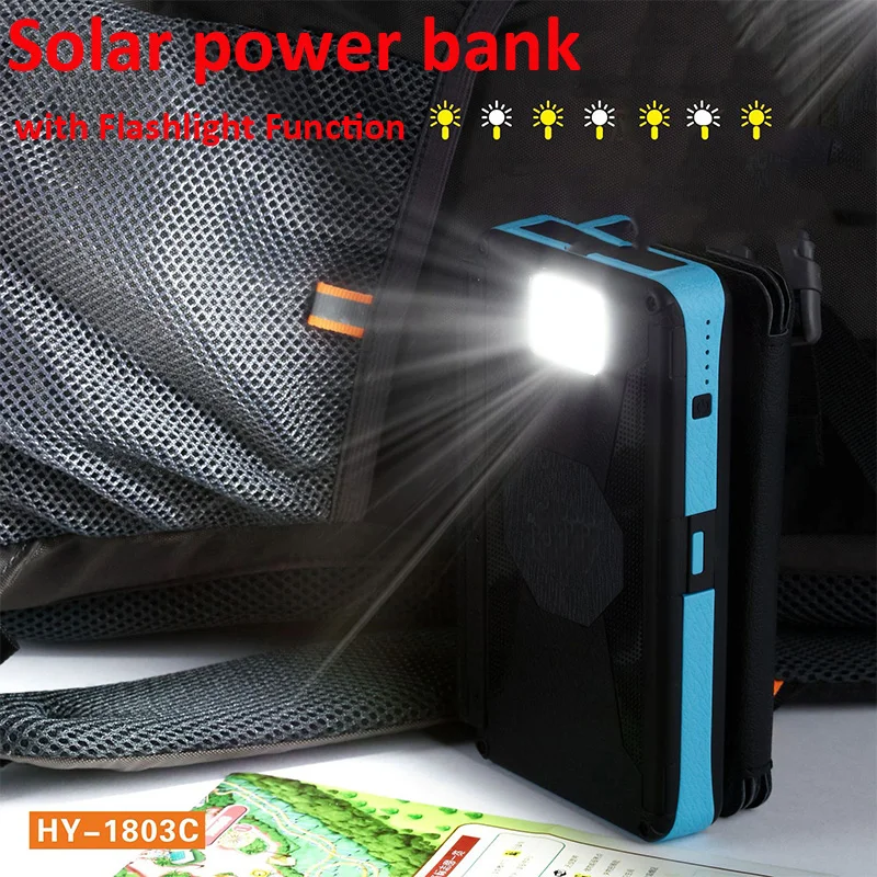 Характеристики продукта: -Встроенный 1/2/3/4/5 складной высоко эффективное солнечное Панельное частью принесет больше мощность и стабильное зарядное устройство на солнечной батарее опыт-2 а эффективное быстрое зарядное устройство, 20%-30% быстрее, чем обычный 5 в 1 а Входное зарядное устройство-Супер яркий светодиодный свет с 3 режимами для аварийного, постоянного света, стробоскопа и SOS-Двойные технологии подзарядки, можно заряжать не только от солнечного света, но и от розетки или автомобильного зарядного устройства через порт постоянного тока-Водостойкий пыленепроницаемый и ударопрочный, идеально подходит для наружного использования-Порты USB хорошо защищены резиновыми колпачками, чтобы держать их подальше от воды, безопасно заряжать ваши смартфоны, планшеты или любые другие 5 в USB-заряженные устройства.-Сертификаты CE, FCC, RoHS; Технология защиты от короткого замыкания и перенапряжения обеспечивает безопасность вас и ваших устройств.-Совместимость с большинством usb-зарядных устройств, таких как iPhone, iPad, Samsung Технические характеристики:USB вход: DC5V/2AВход типа C: 5 В 3 АВыход USB: DC5V/2AЕмкость аккумулятора: 20000 мА · чМатериал: АБС-пластик Пакет включает в себя:1x Solar Power Bank Примечание: 1. Пожалуйста, заряжайте его под сильным солнечным светом, Не заряжайте его в пасмурный день или место через стекло (например, окно или автомобиль)2. Солнечная зарядка предназначена для чрезвычайных ситуаций, не является основным источником зарядки из-за компактного размера солнечной панели и интенсивности солнечного света, для полной зарядки может потребоваться 21 час при дичайшем сильном освещении (7-8 часов солнечного света в день). Поэтому мы настоятельно рекомендуем заряжать солнечное зарядное устройство через адаптер или компьютер, что займет всего несколько часов3. Как правило, он может достигать 25% батареи после 5 часов зарядки под сильным солнечным светом, так что только первый свет будет гореть4. Капля воды в порядке, но, пожалуйста, не погружайте ее в воду