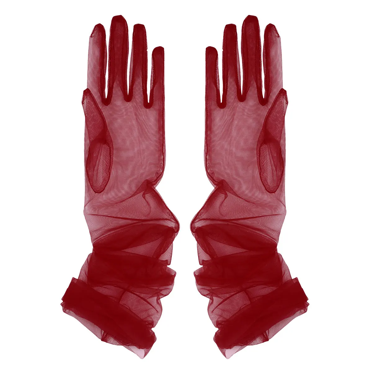 Элегантные женские длинные перчатки iiniim с пальцами для взрослых, свадебные прозрачные тюлевые варежки, перчатки для свадебной вечеринки, аксессуары для выпускного вечера