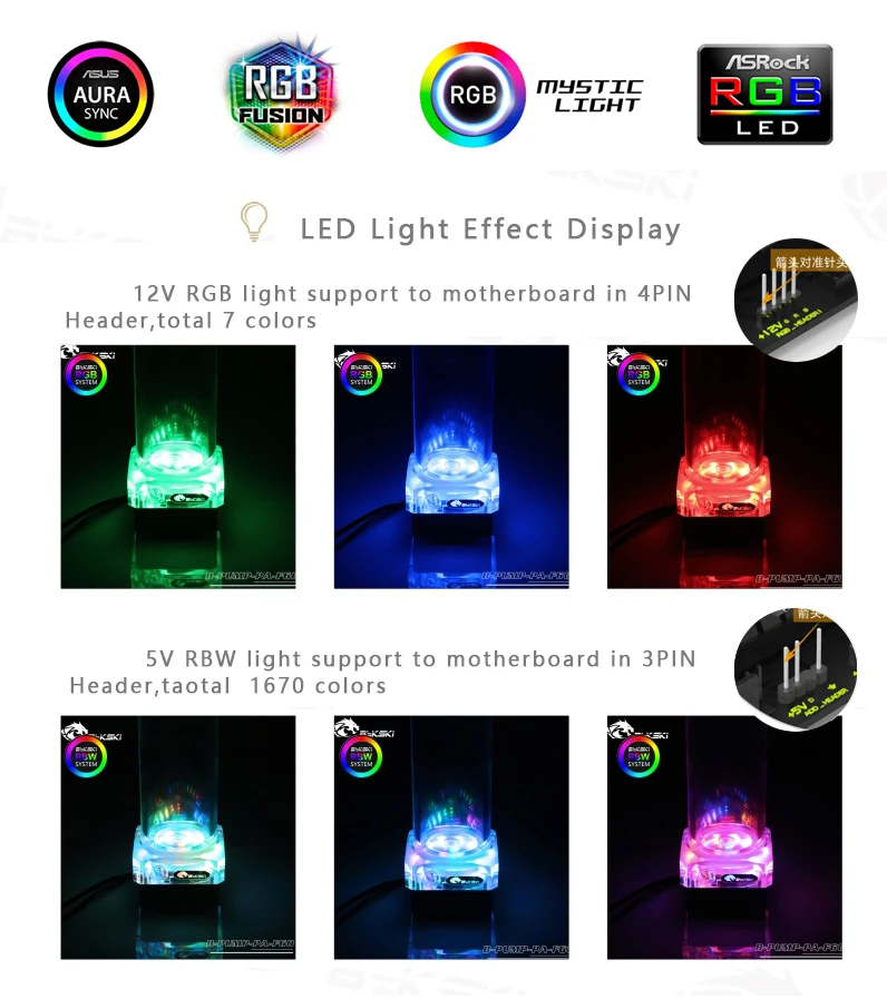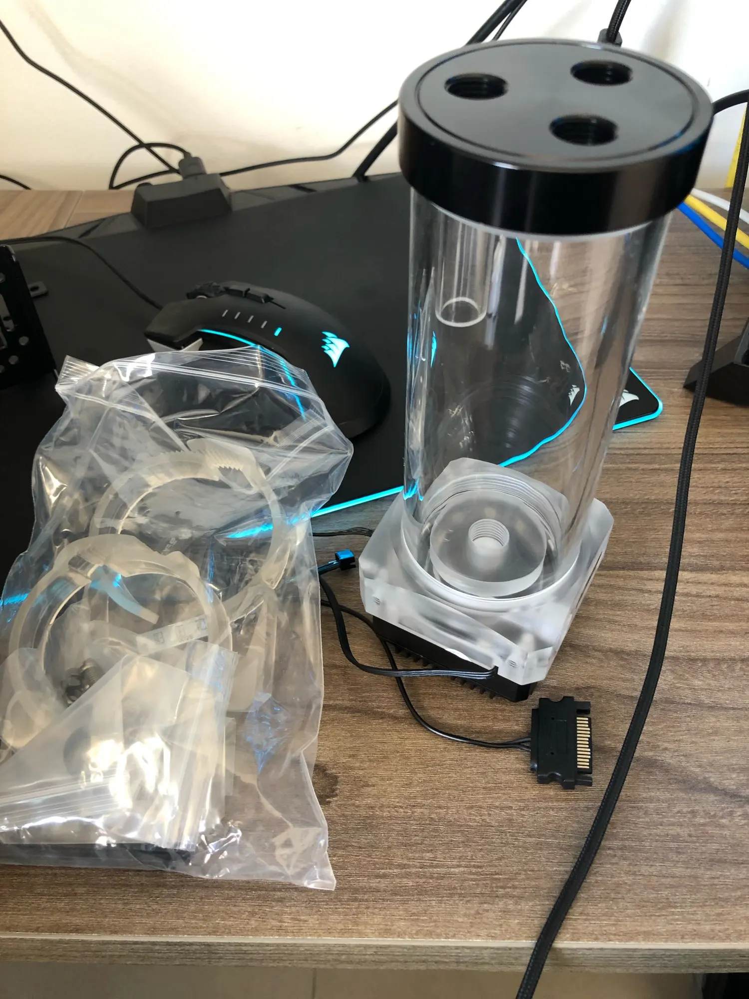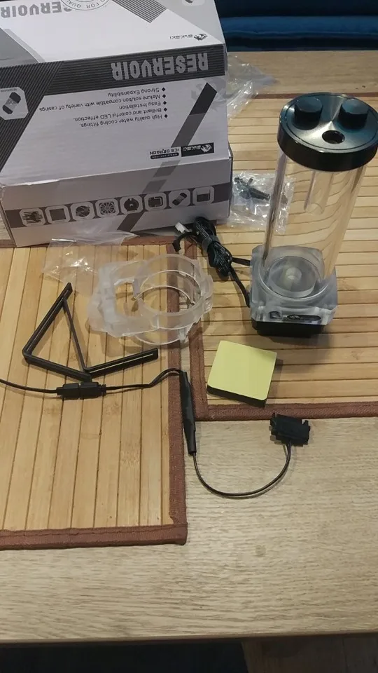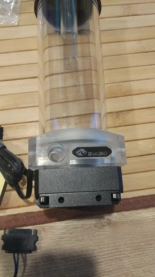 Доставка была очень долгой, два месяца до Москвы. Упаковка отличная, доехало без повреждений. Сама помпа очень тихая, полностью отсутствуют вибрации и какие-либо посторонние шумы. Но производительность небольшая, максимальные обороты 2700 rpm, подключение PWM. С бачком 200мм суммарная высота довольно большая и составляет 25см, советую брать 150мм. С подсветкой всё ок, 3 pin 5v отлично работает на плате Gigabyte.