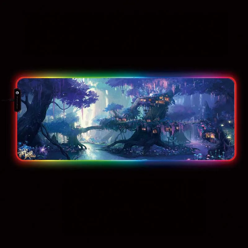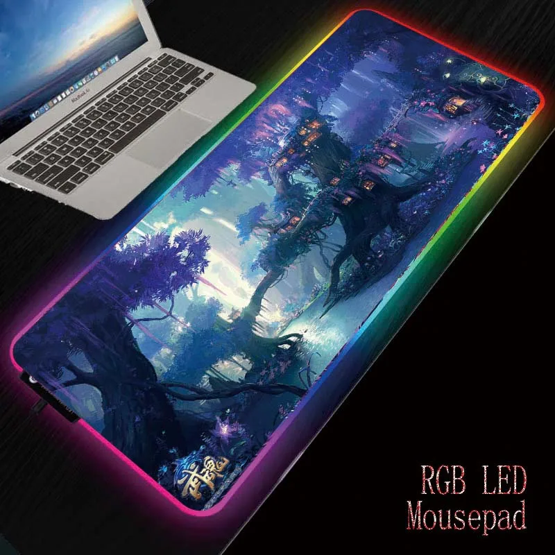 Большой игровой коврик для мыши Mairuige с изображением сказочного леса цветка дерева RGB, игровой светодиодный компьютерный коврик для мыши с подсветкой для клавиатуры, Настольный коврик