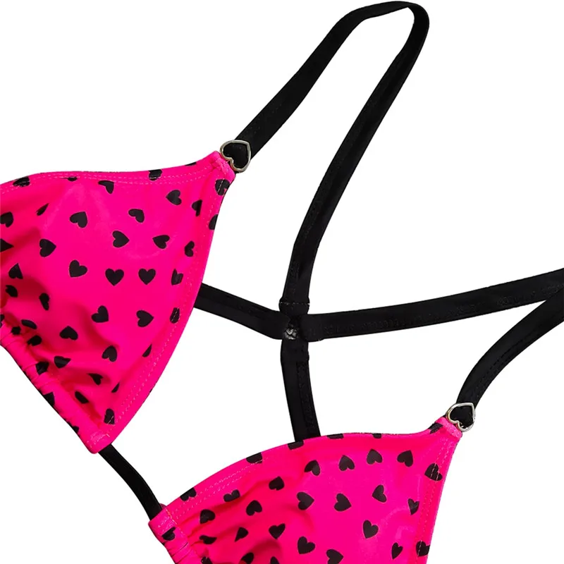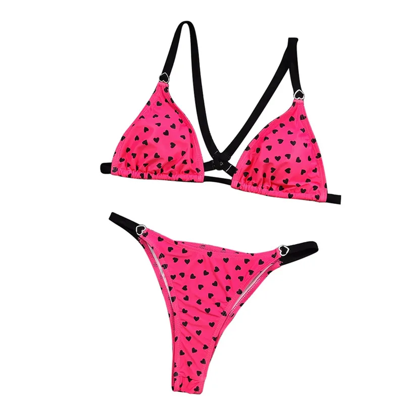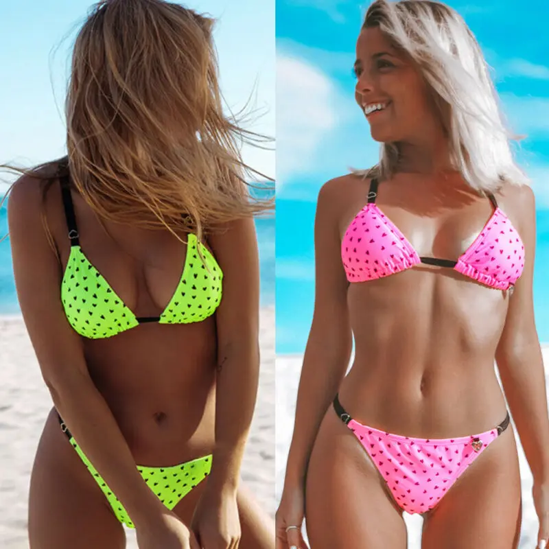 Женский комплект бикини, Новинка лета 2020, купальник пуш-ап для женщин, купальный костюм в горошек с сердечками и надписью Love, женский купальник с подкладкой