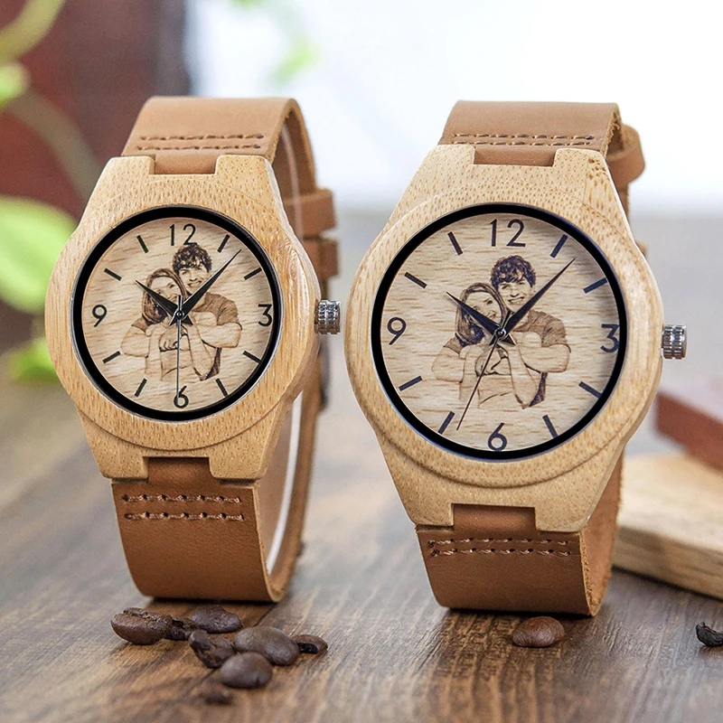 Часы BOBO BRID для влюбленных, оригинальные часы с УФ-принтом по дереву, индивидуальный логотип, Подарок на годовщину
