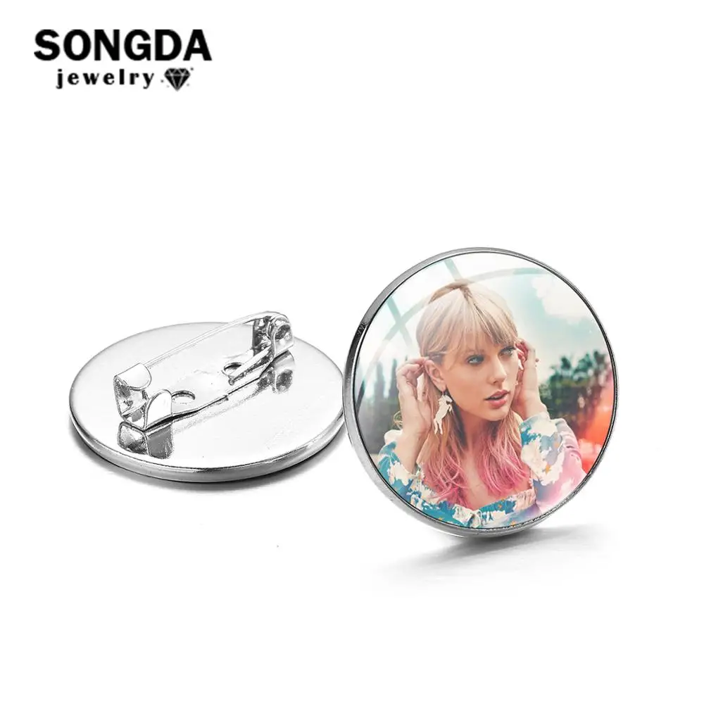 SONGDA Европейская и американская популярная женская брошь с изображением певицы, альбом для любителей, стеклянные круглые значки для лацканов, подходит для одежды, шляпы, сумки