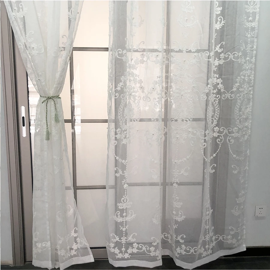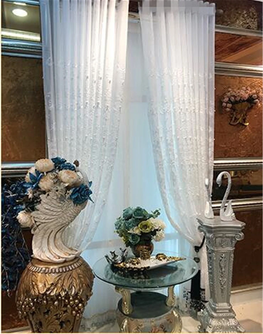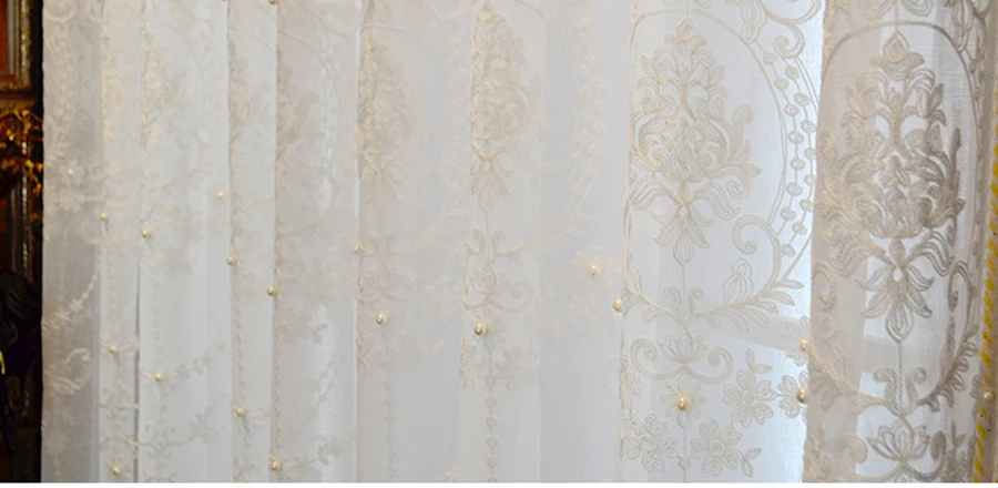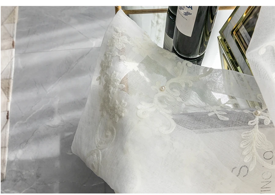 Белая элегантная занавеска Lxury, Тюлевая занавеска с жемчужной вышивкой, шторы для окон, занавески для гостиной, готовая занавеска ZH040 #5