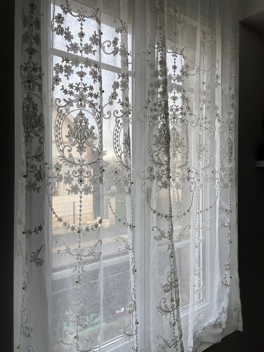 Страна: RU Color: White beads Tulle Size: 1pc W100CM X H180CM Processing: Rod Pocekt Process Доставка: Standard Shipping 27.09.2021