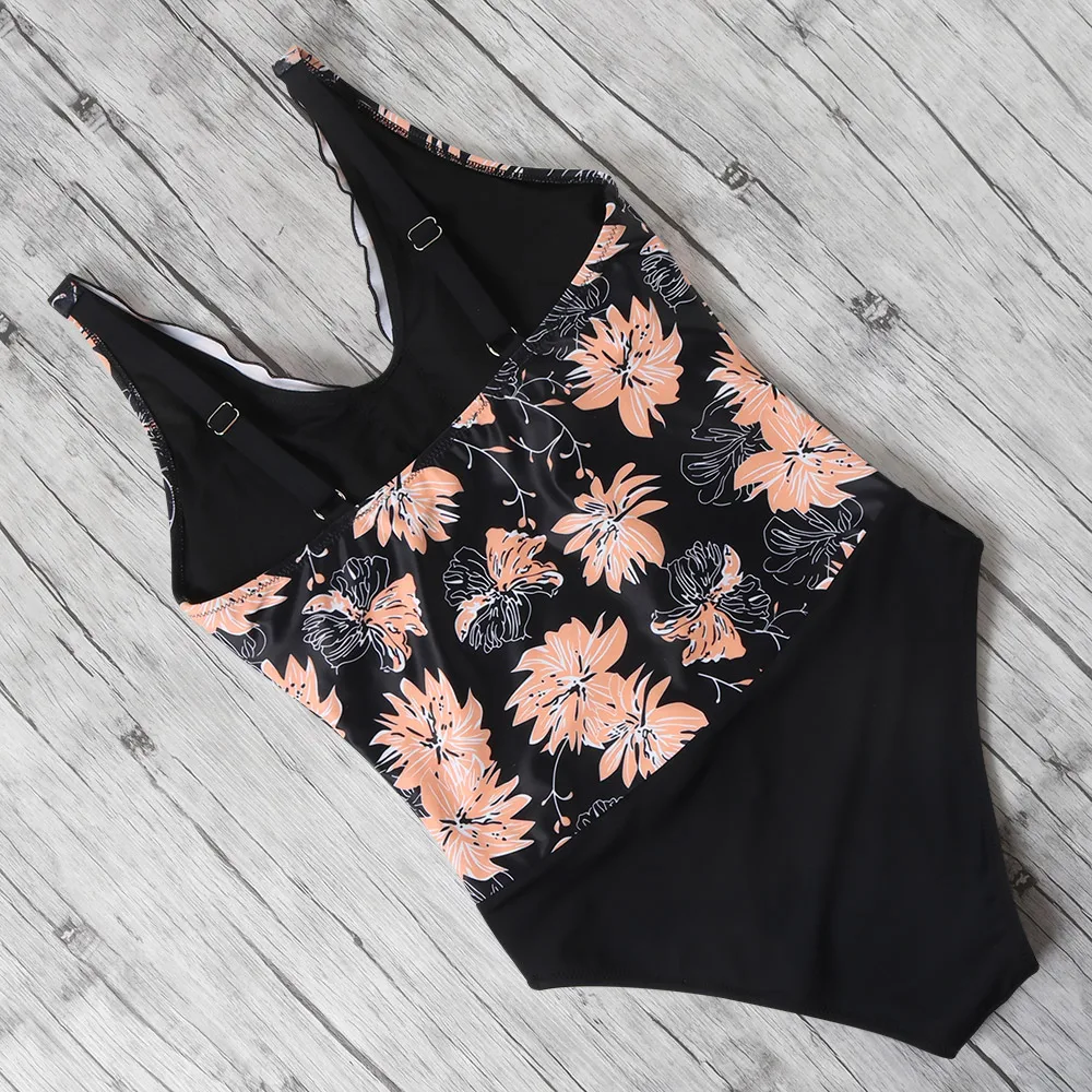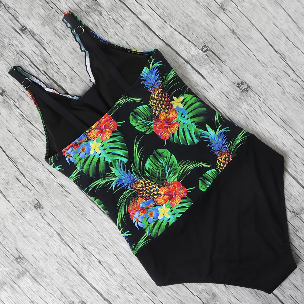 купальник слитный Женский купальник, монокини, 2020, с тропическим принтом, купальный костюм, с рюшами, с контролем живота, купальник, пляжная одежда, Цельный купальник для женщин купальник женский слитный