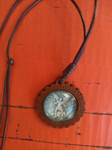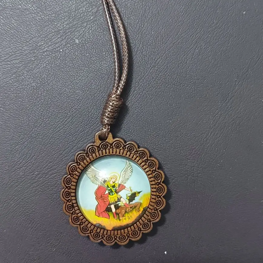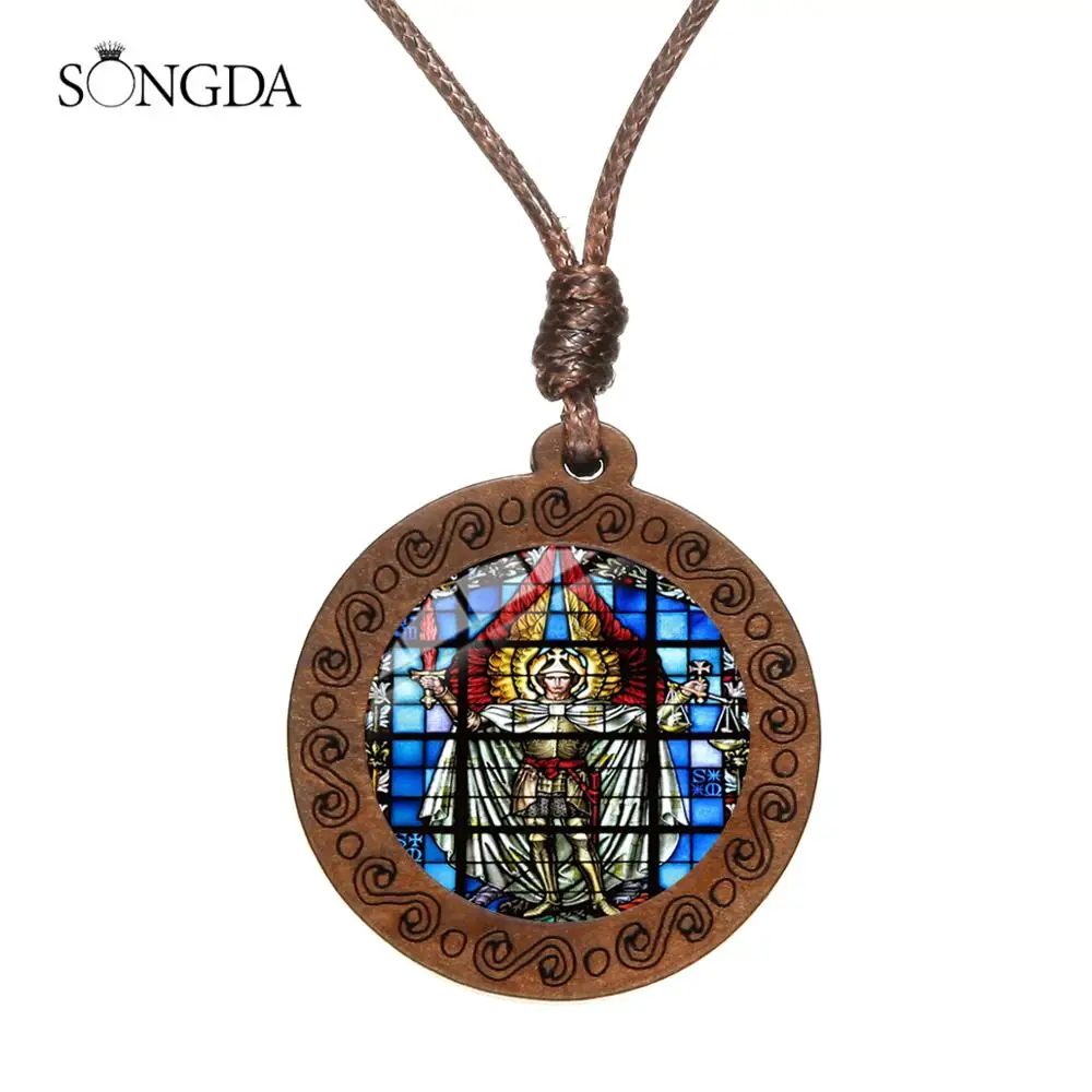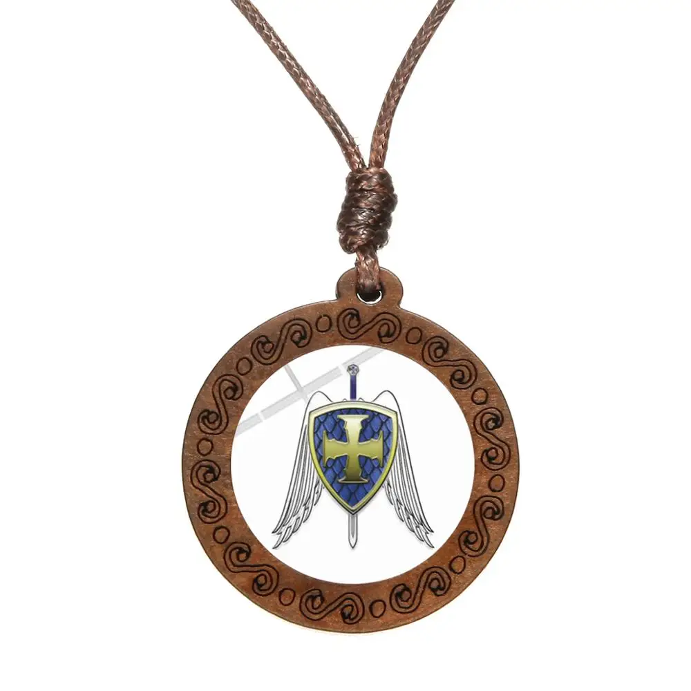 Ожерелье Archangel St.Michael Protect Me Saint Shield, ожерелье Talisman с деревянной подвеской, веревочная цепочка, чокер, Христианский подарок