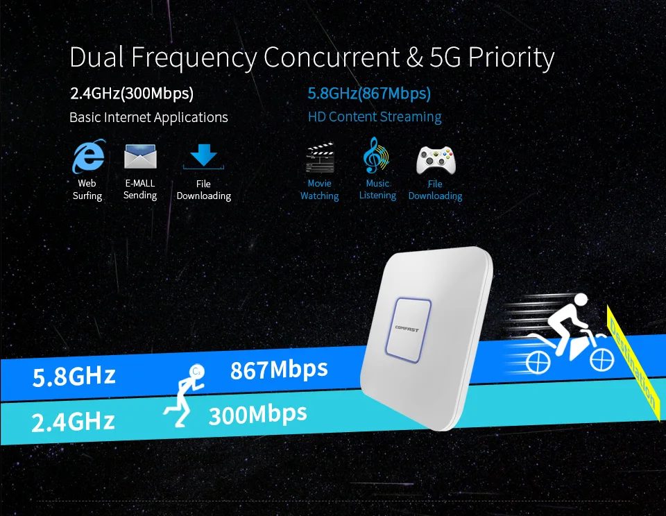 Точка доступа COMFAST, 1200 Мбитс, Двухдиапазонная точка доступа, 2...