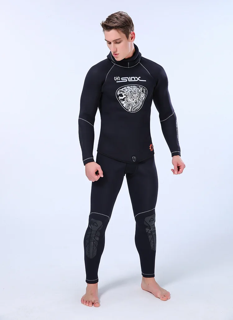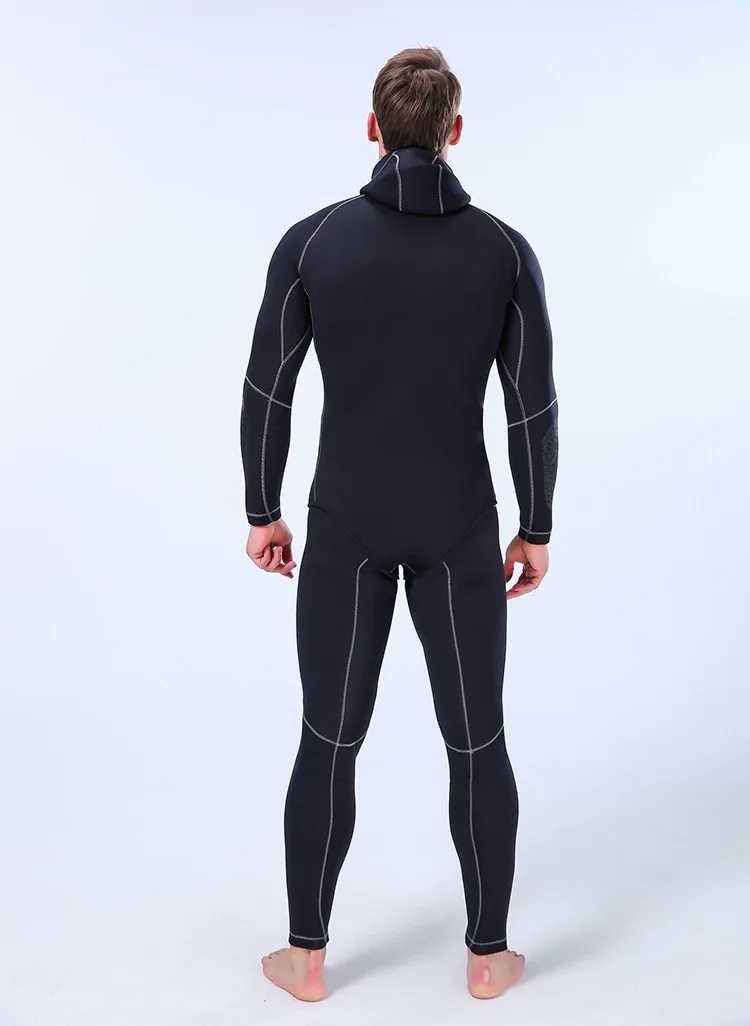 Неопреновый гидрокостюм 5 мм, комплект из 2 предметов, мужской костюм для подводной охоты с аквалангом, куртка с капюшоном и штаны, морозостойкий купальник для подводного плавания и серфинга