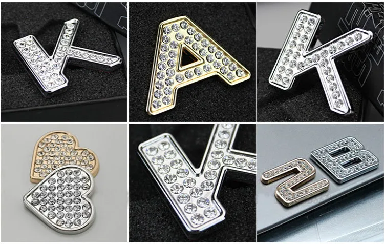 Хрустальный Алмазный значок, эмблема алфавита для рукоделия, 3D металлическая пользовательская Автомобильная наклейка, золотой, серебряный блеск