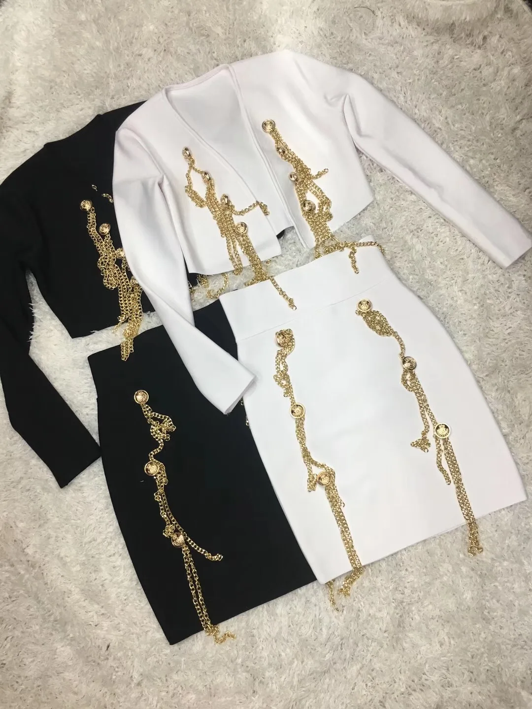 Женское платье с длинным рукавом, черно-белое облегающее платье с цепочкой, модель 2021 года