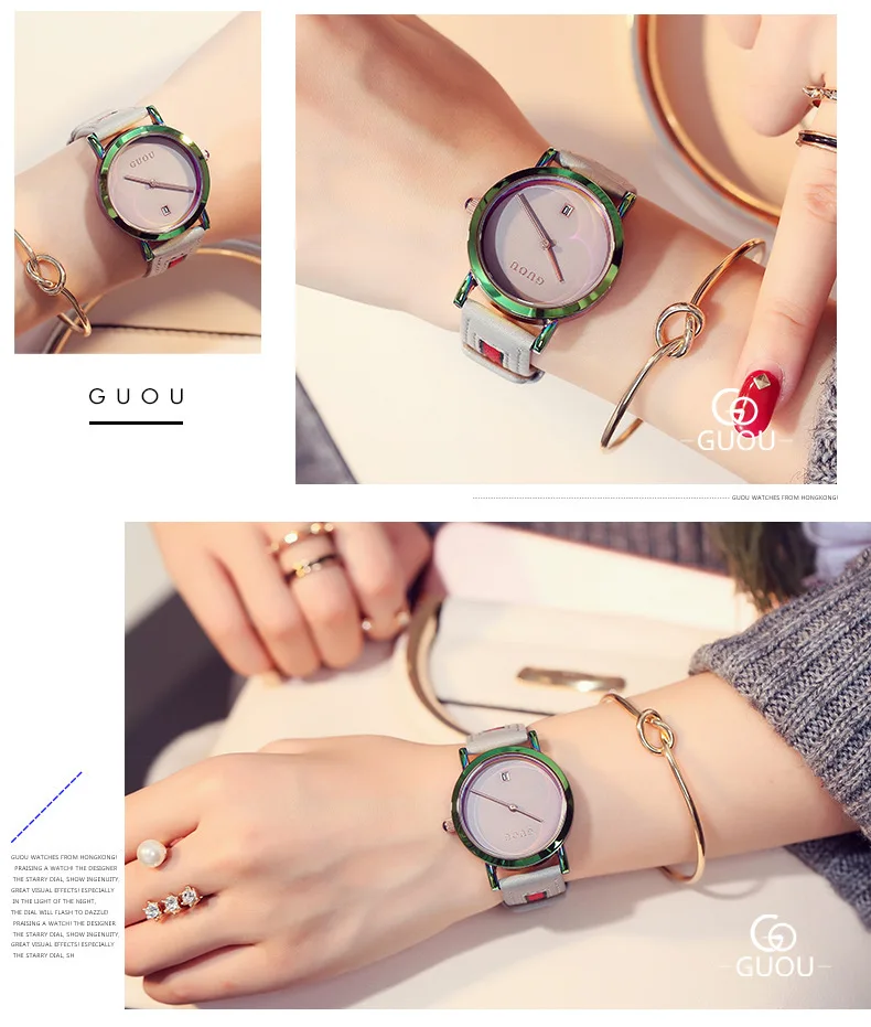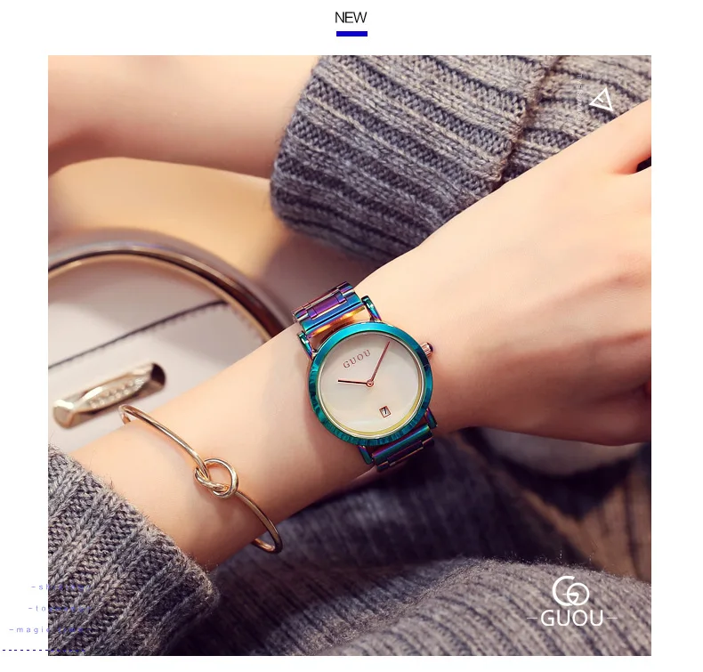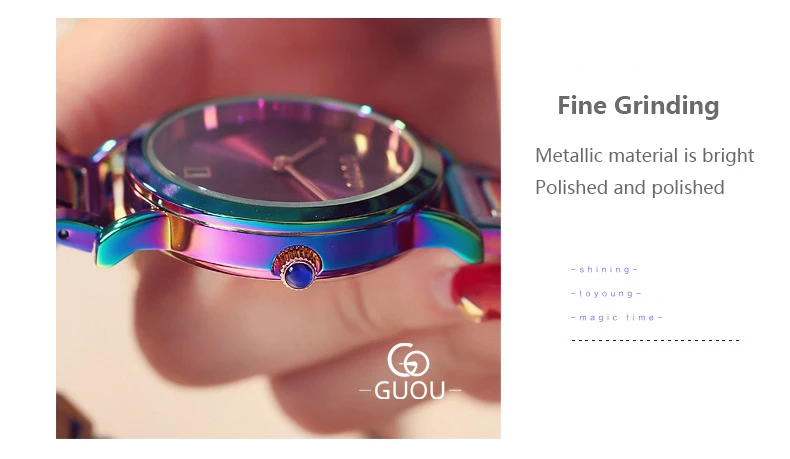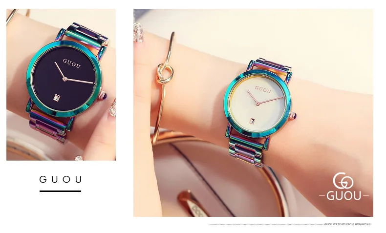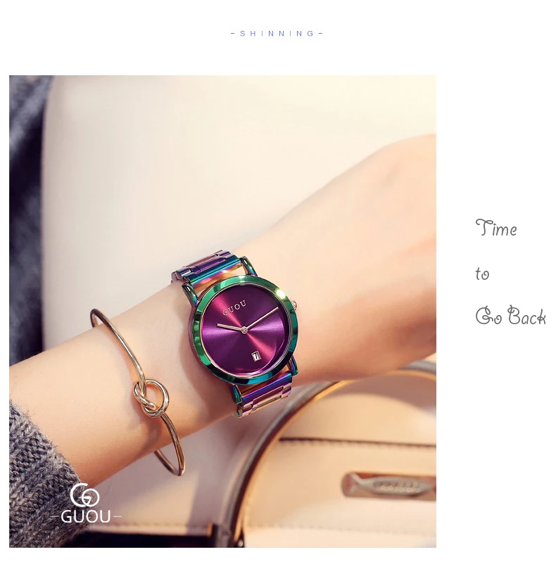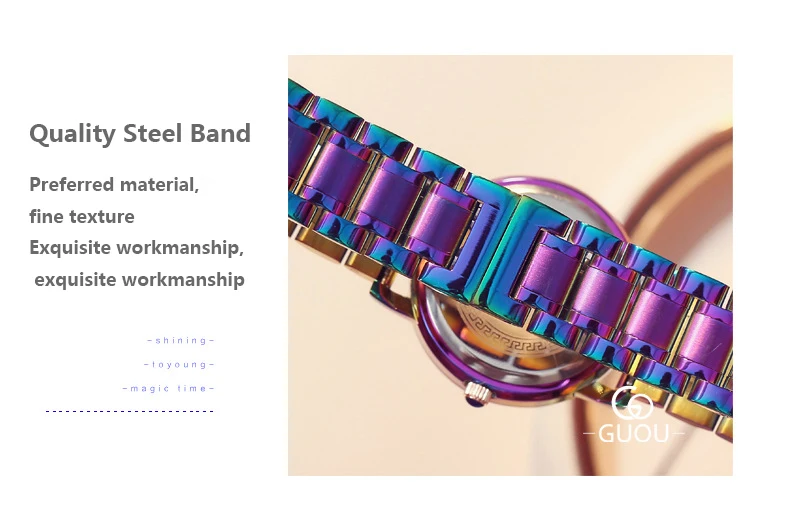 Часы GUOU женские, из нержавеющей стали, с цветным ремешком, фиолетовые