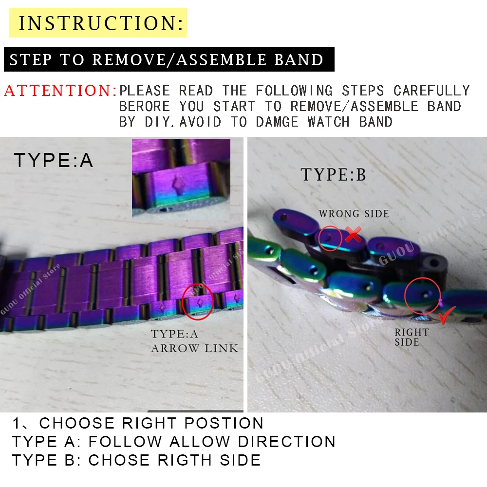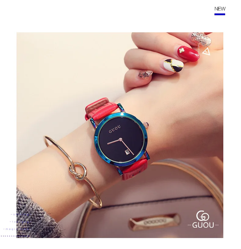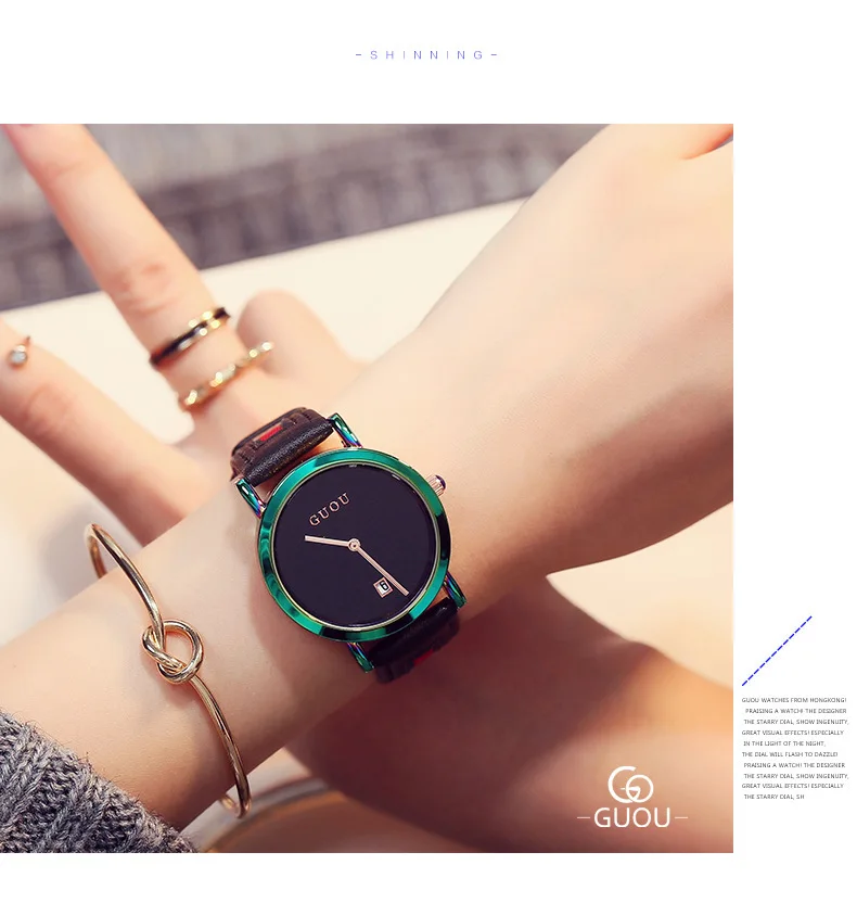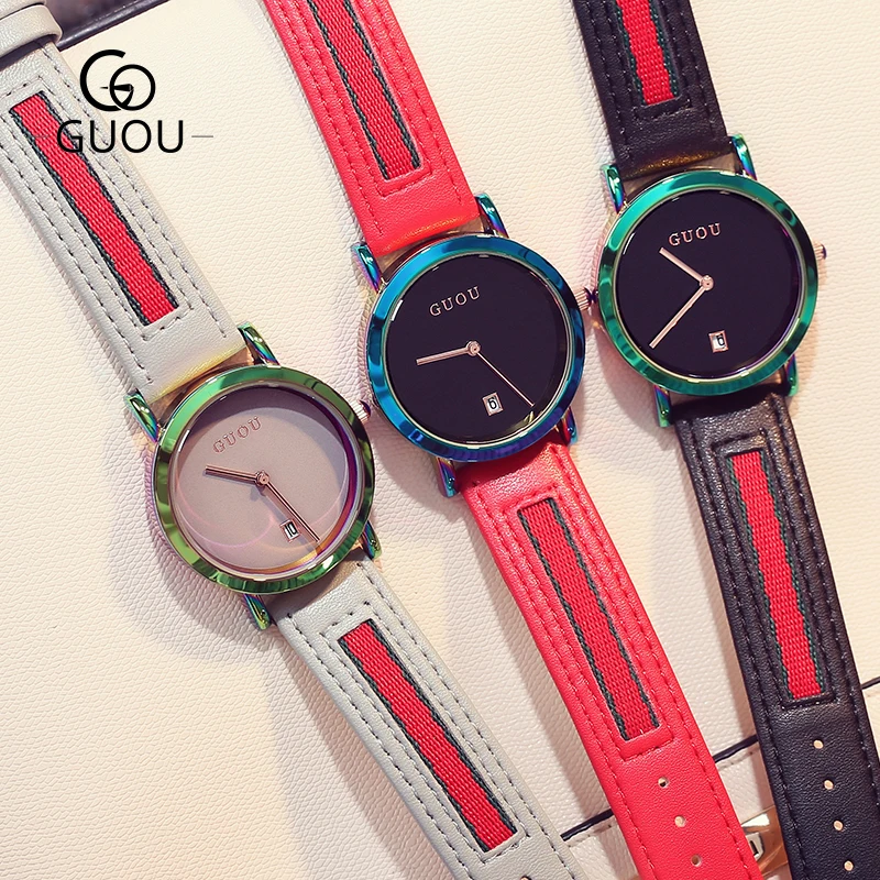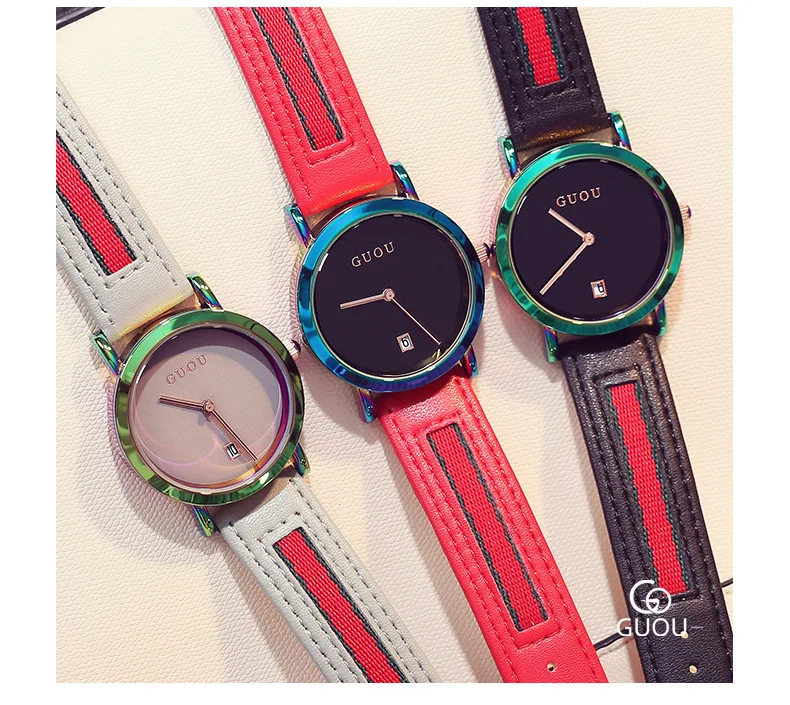 Часы GUOU женские, из нержавеющей стали, с цветным ремешком, фиолетовые