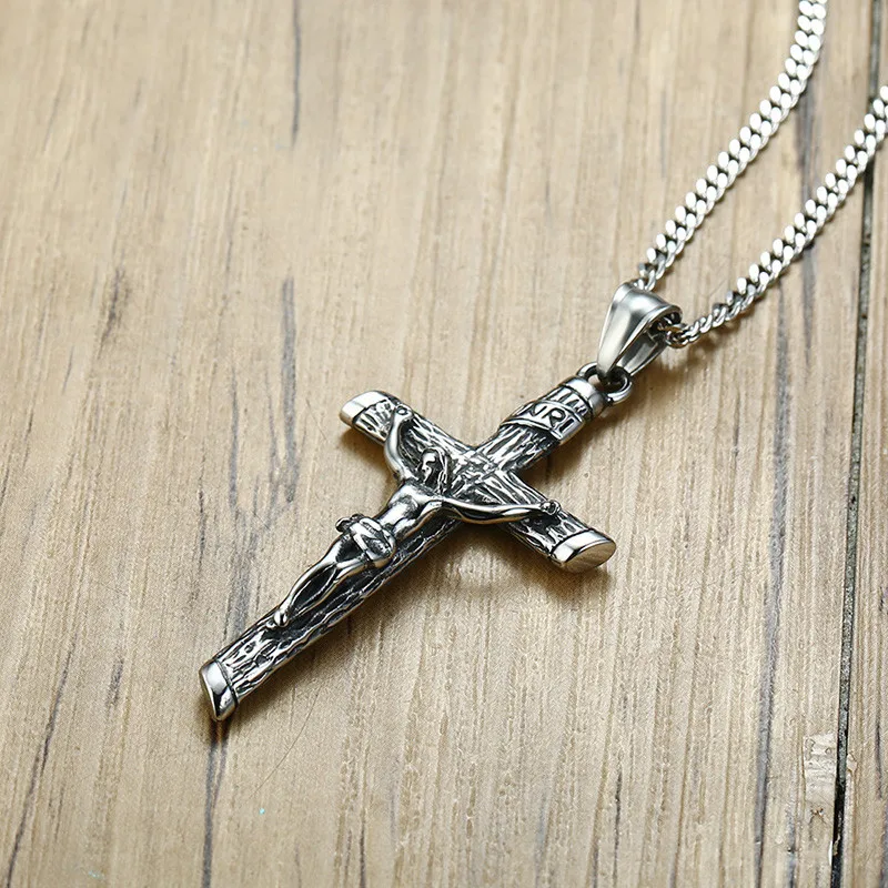 Ожерелье с кулоном в виде креста с распятием для мужчин, украшение в стиле панк из нержавеющей стали, подарок на крестины с Иисусом