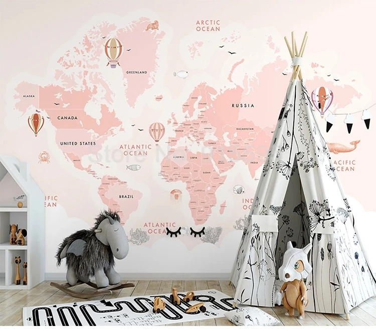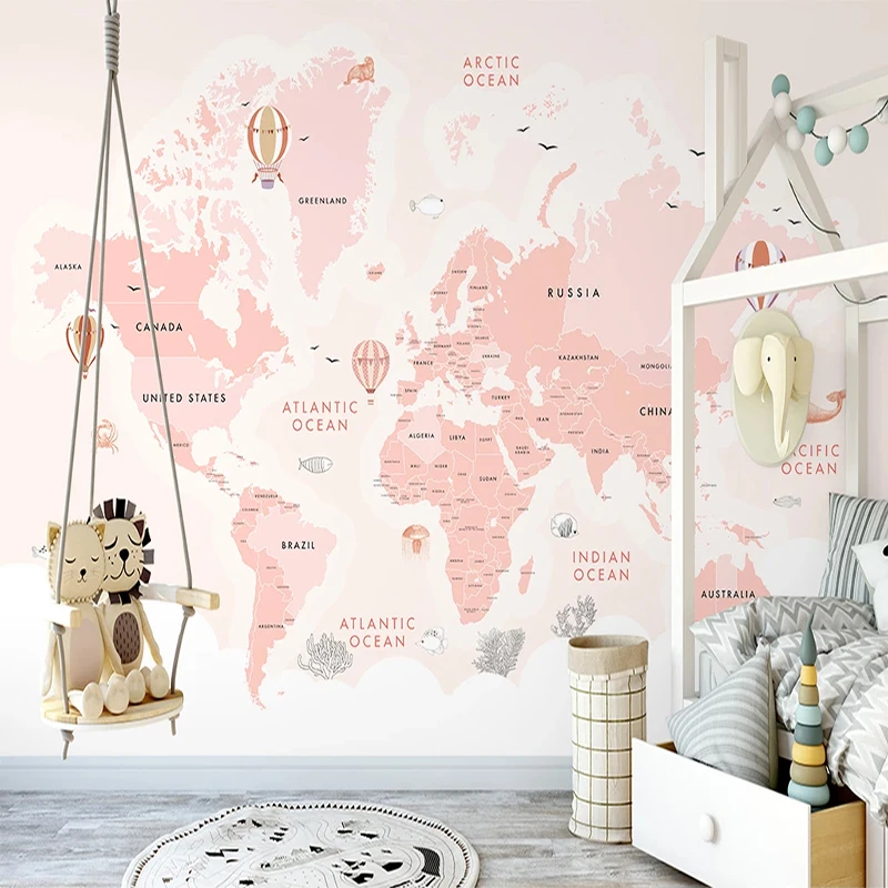 Пользовательские 3D фотообои для детской комнаты розовый воздушный шар море карта мира детская комната Спальня украшение настенные росписи