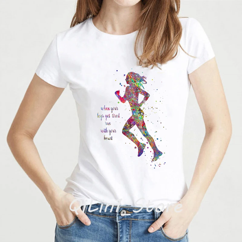 Футболка для девочек с акварельным художественным принтом гимнастик...