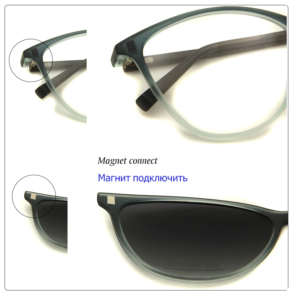 TR90 Магнитная оправа для очков, Женская оправа для очков кошачий глаз с поляризационными зажимами, солнцезащитные очки с линзами Uv400 для женщин