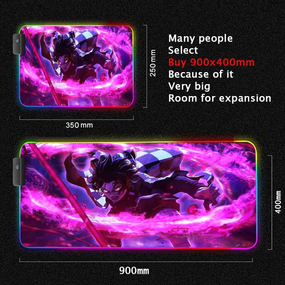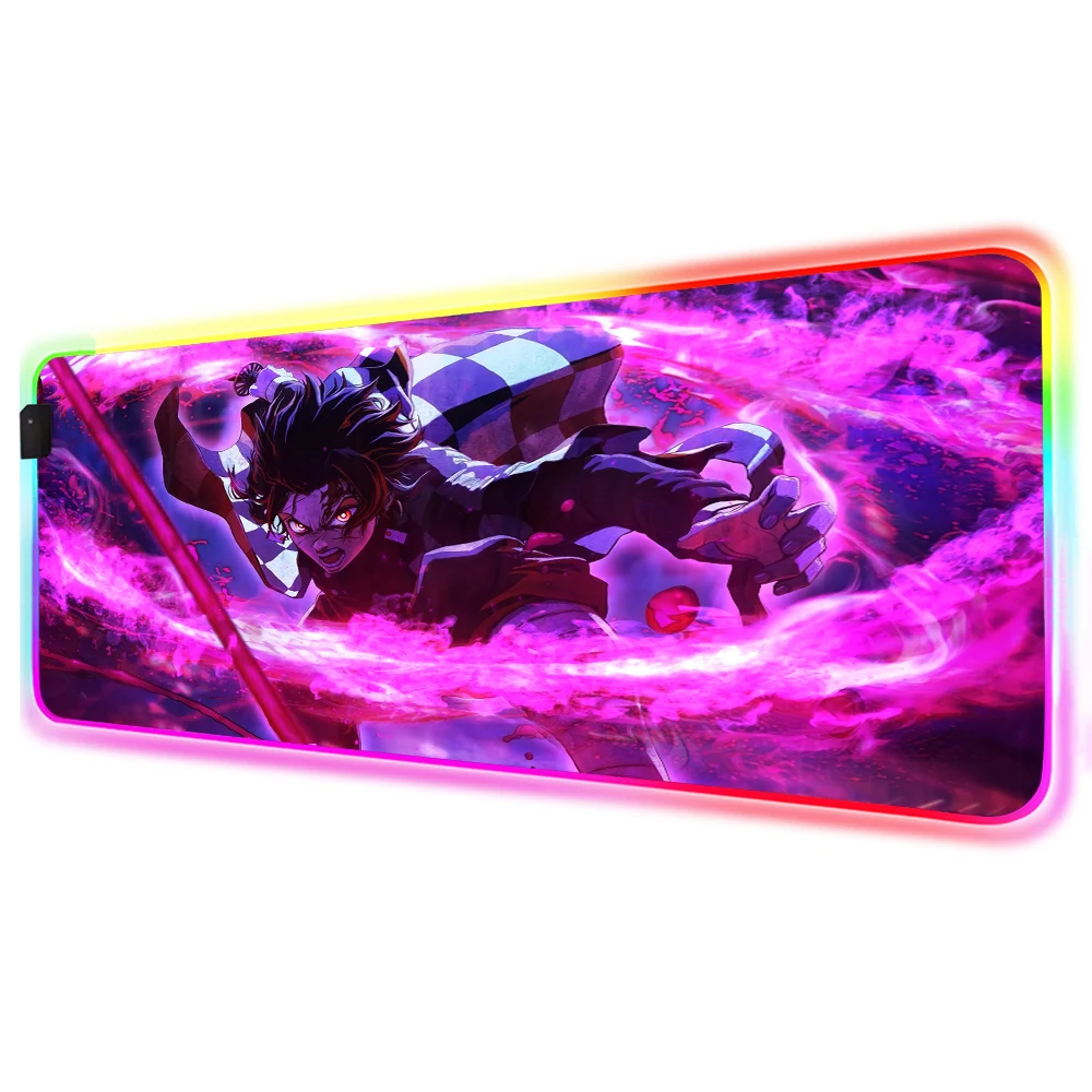 Коврик для мыши Demon Slayer, ПК, Rgb-подсветка, светодиодная подсветка, для клавиатуры