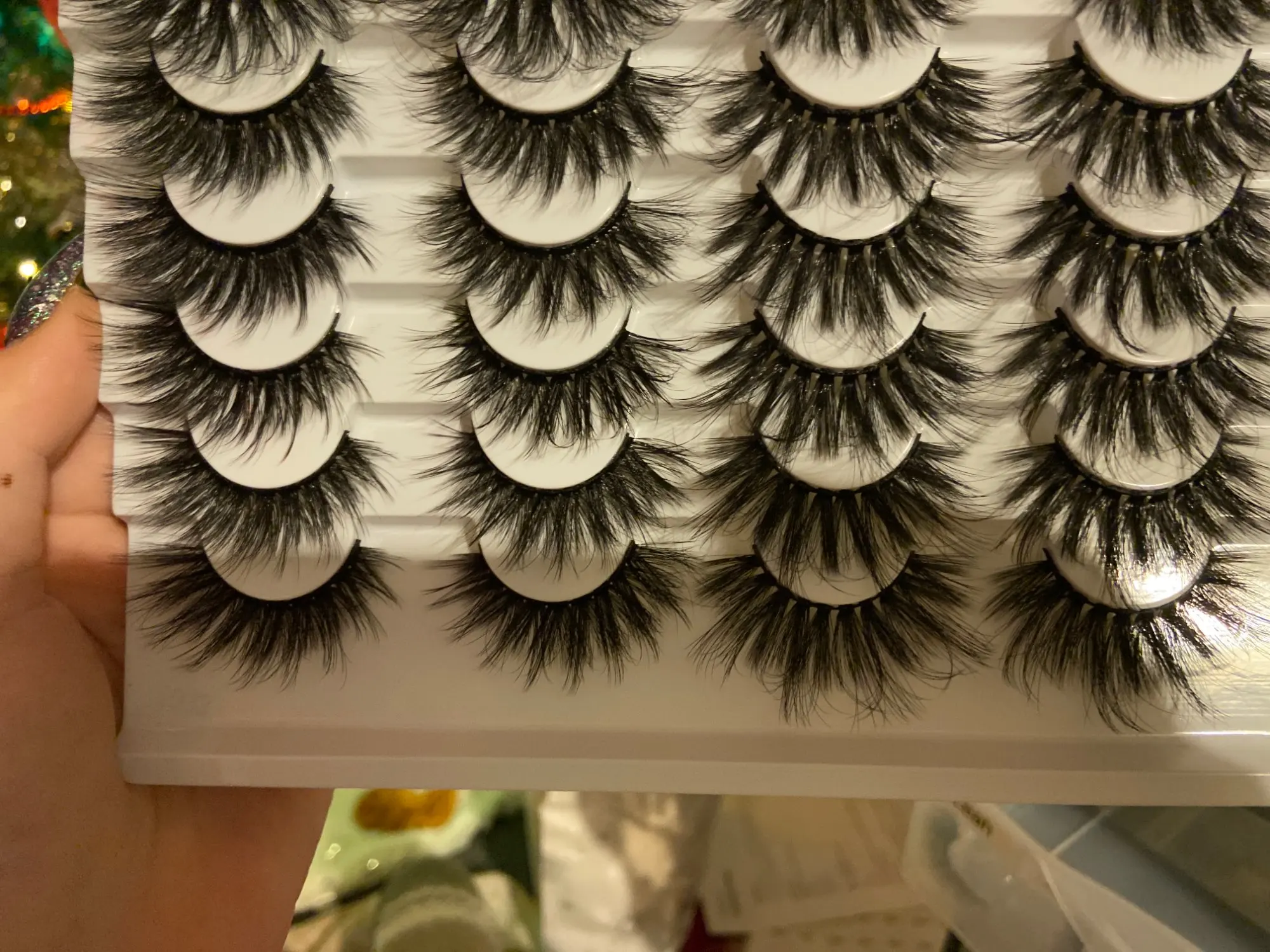 Очень нравятся эти ресницы! Они лучше, чем я ожидал! Прилипает к ним! Доставка немного медленная! Но когда я закажу больше, я буду заказывать много для своего бизнеса!