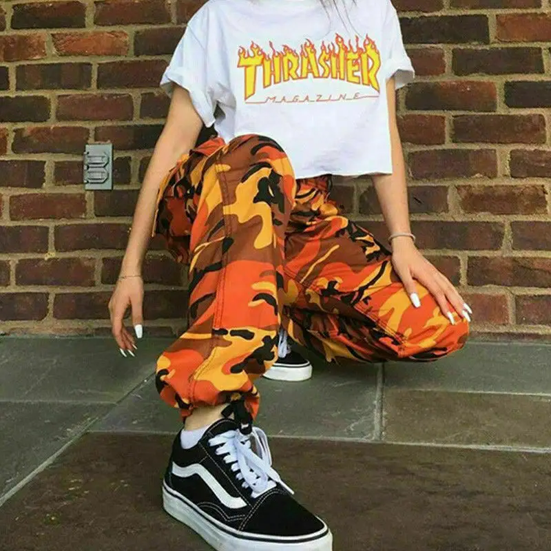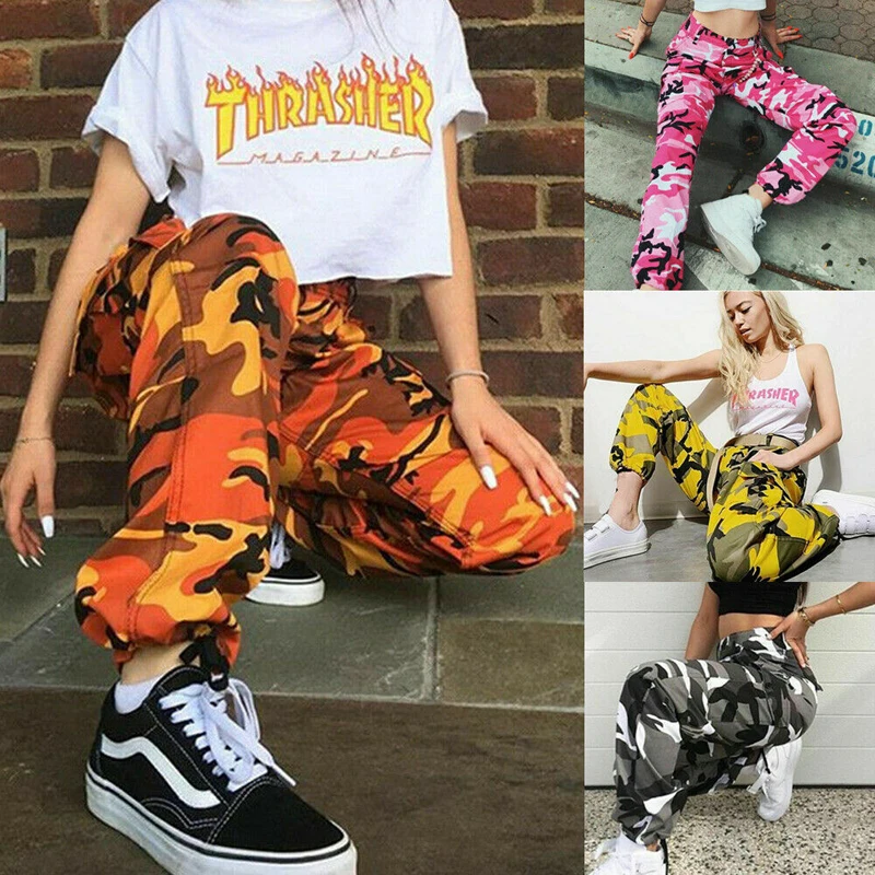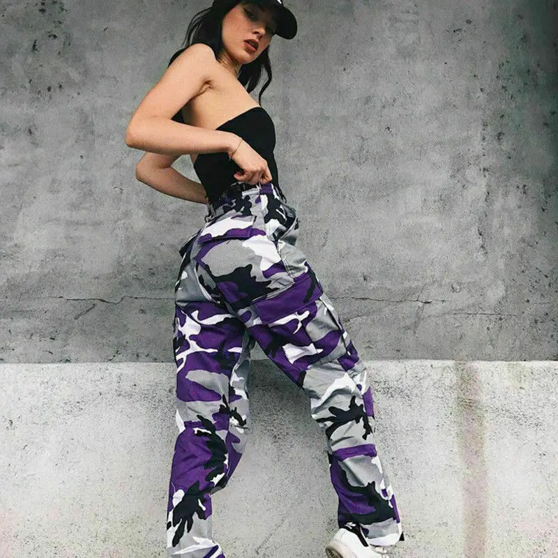 Брюки-карго женские, с камуфляжным принтом, с высокой талией