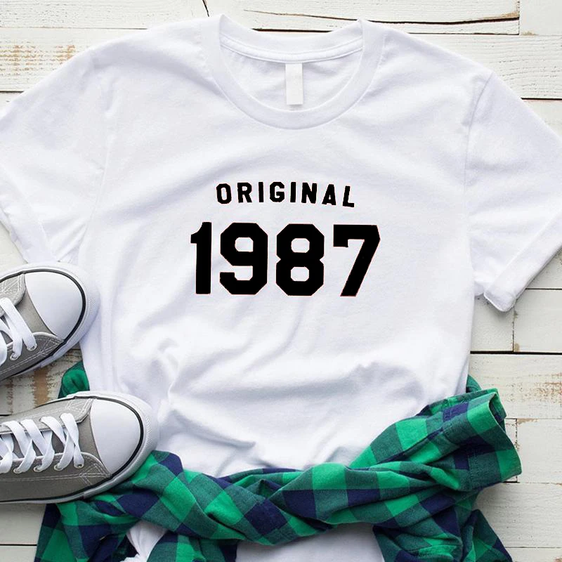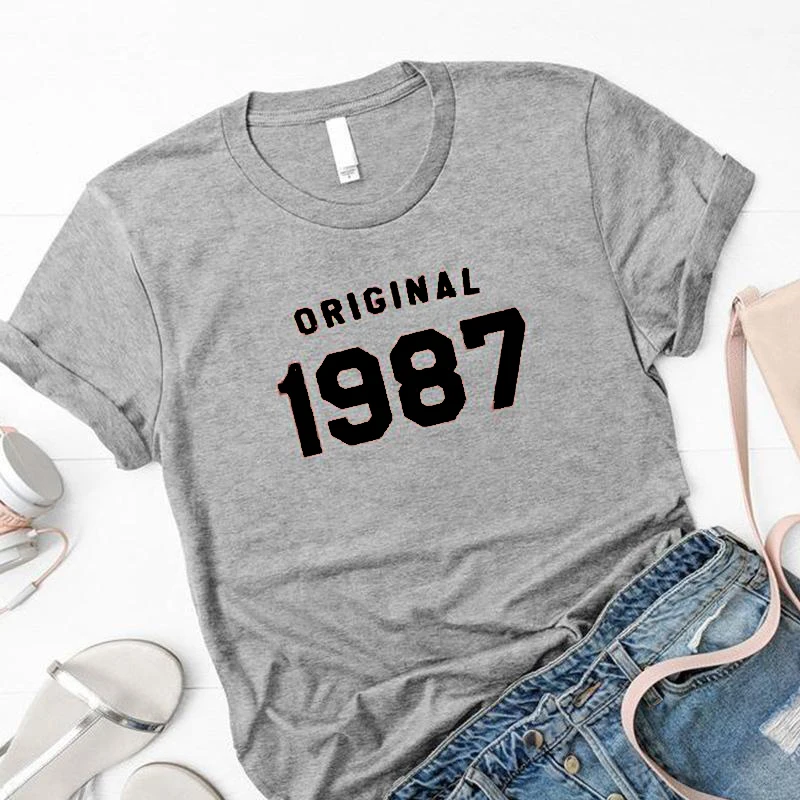 Оригинальные футболки 1987, модные хлопковые футболки в эстетике 35-го дня рождения, женская футболка с забавным графическим принтом, повседневные футболки с круглым вырезом и коротким рукавом