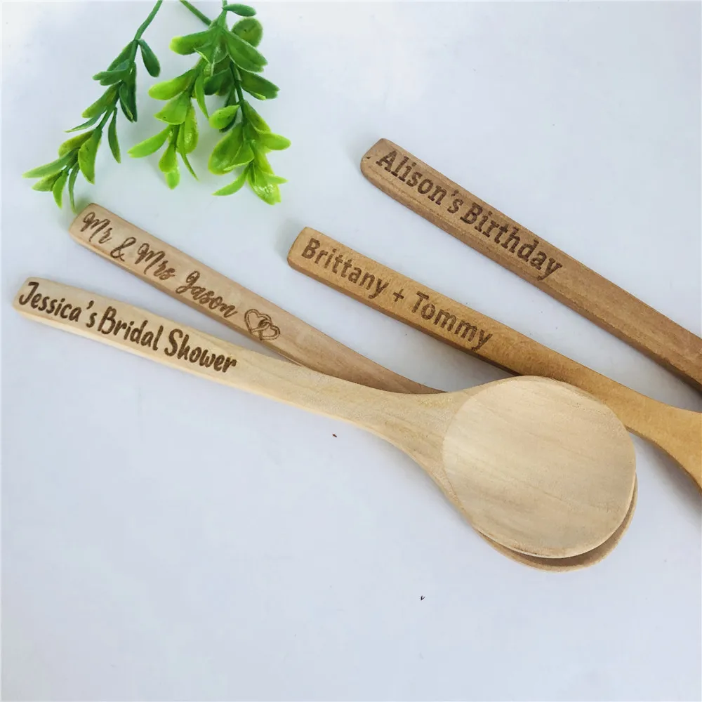 Деревянные ложки, уникальные, для вечеринок, с гравировкой текста на заказ, для свадьбы, детского душа, аксессуар для вечерние, деревянная ложка, поставка персонализированный подарок на день рождения