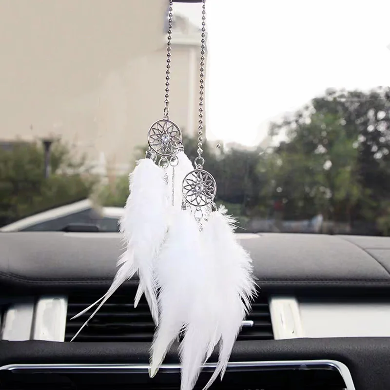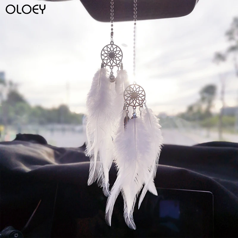 Автомобильный мини Ловец снов аксессуар интерьер для девочек перо Зеркало Подвеска в авто этнический домашний декор счастливый автомобиль украшение