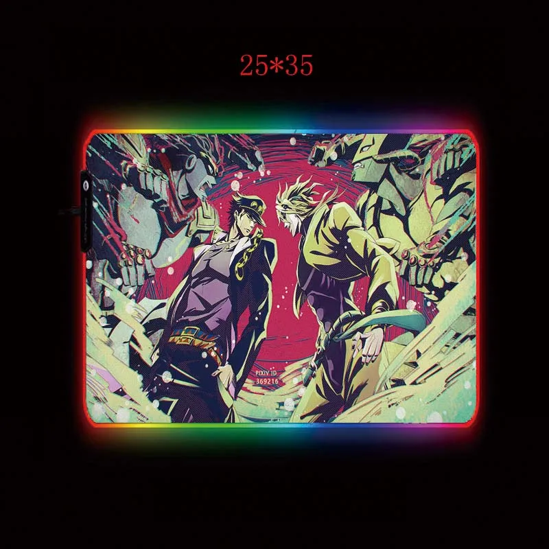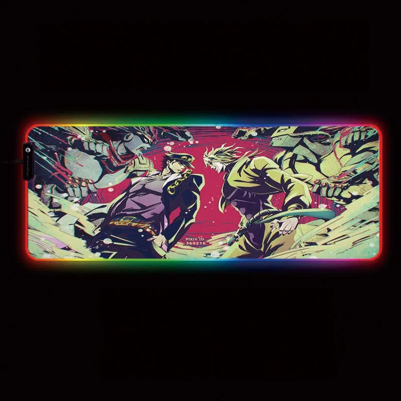 Светодиодный коврик для мыши XGZ Anime Jojo bistrary Adventure, большой геймерский RGB Коврик Для Мыши с USB подсветкой, Радужный резиновый компьютерный коврик, настольная подставка для клавиатуры